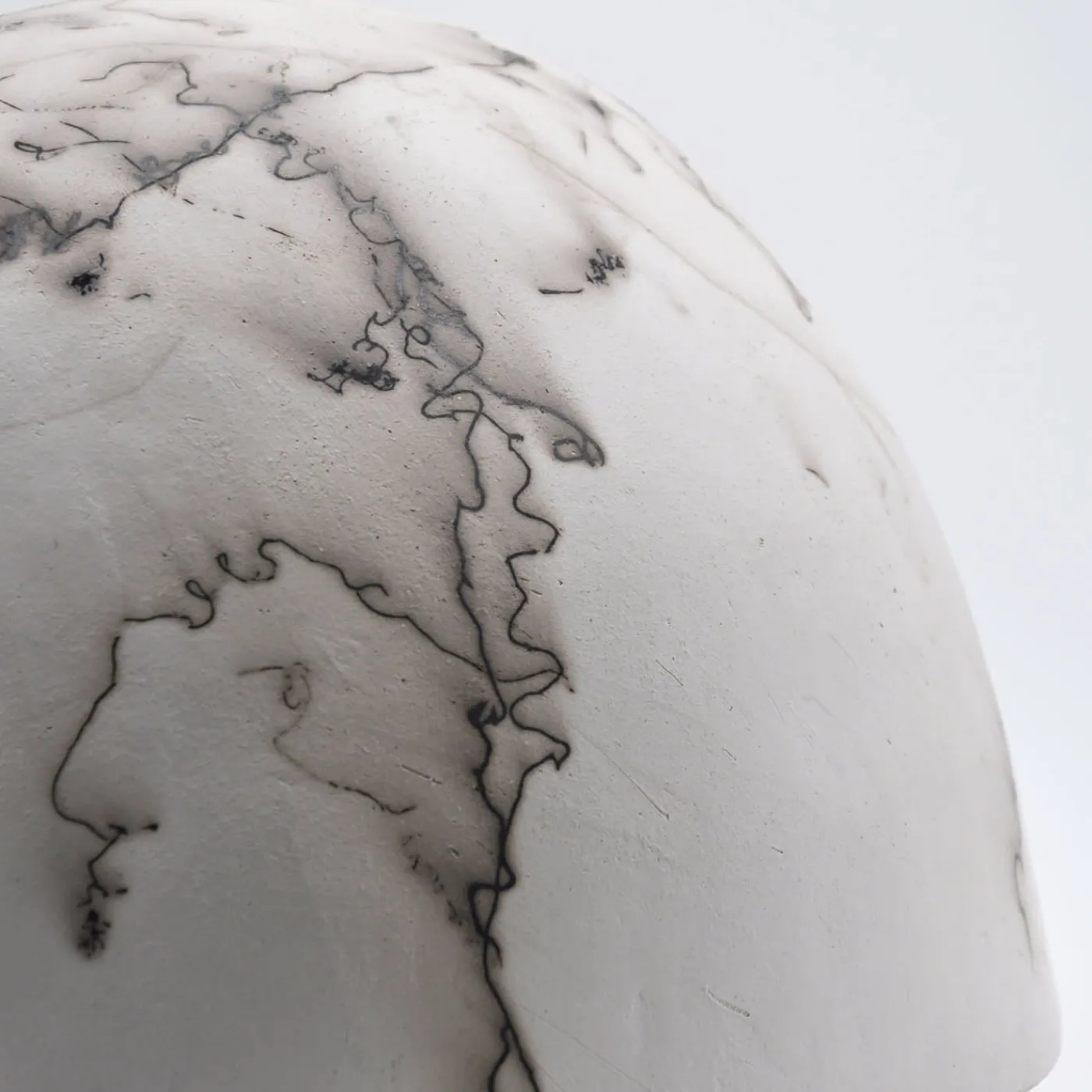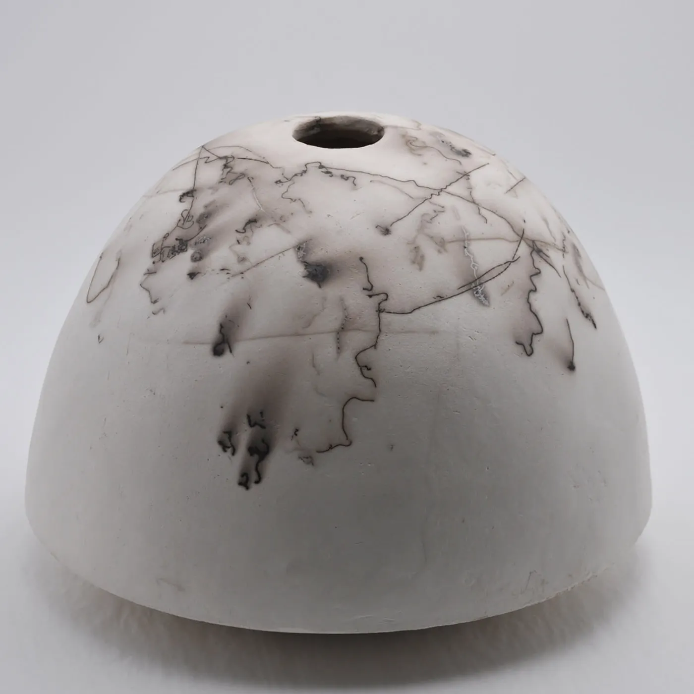 Tanto essenziale nella forma quanto artistico nella lavorazione, questo vaso in ceramica a forma di cupola – adatto anche come semplice scultura – è realizzato a mano secondo l’antico metodo giapponese raku. Non smaltato per una morbida finitura grezza, le sottilissime traccie grigie che adornano l’esterno sono il risultato di una speciale tecnica di affumicatura che utilizza il crine di cavallo. Questo pezzo è stato interamente progettato e realizzato da Nino Basso. I suggerimenti per la cura sono inclusi nella confezione.