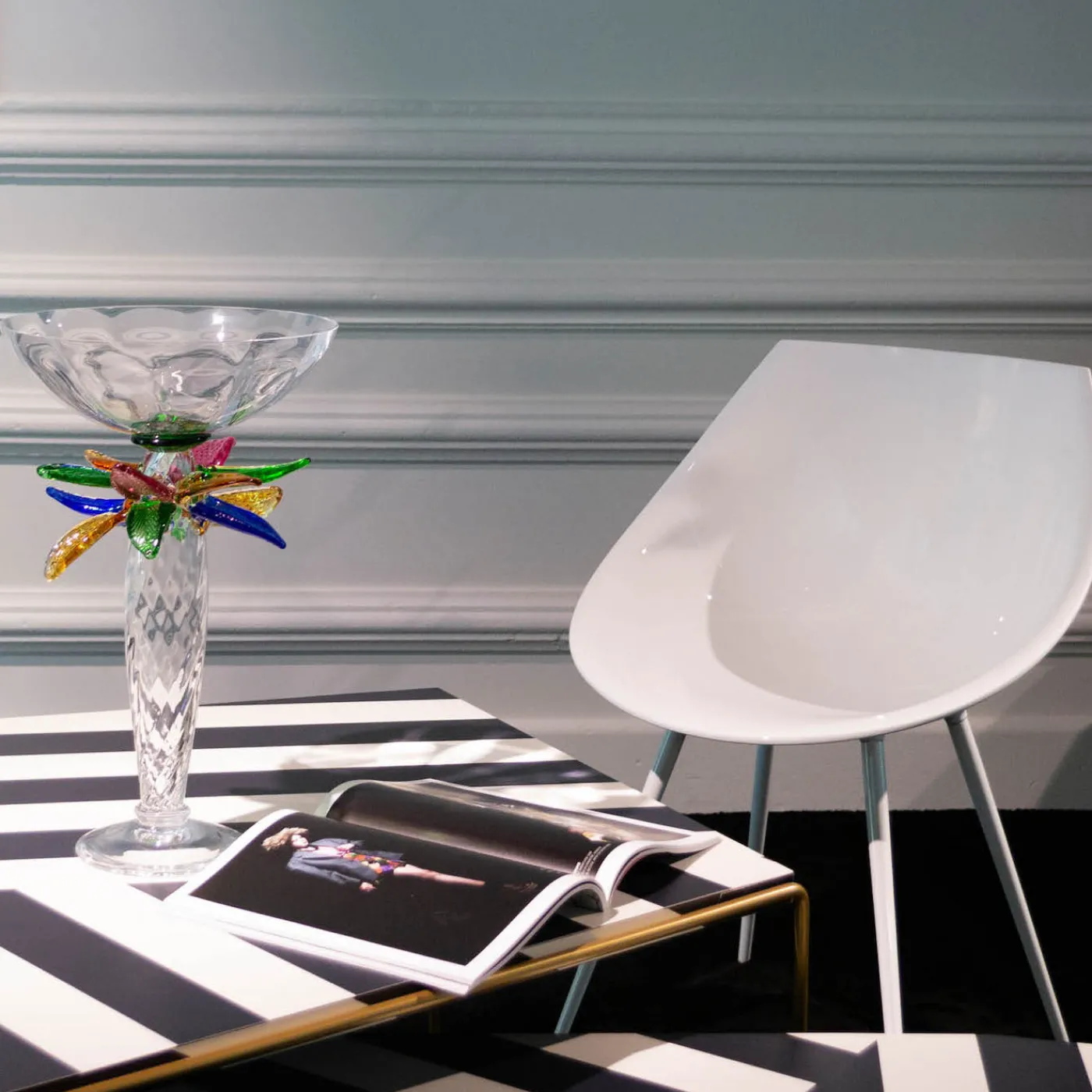 La splendida composizione di petali di questo vaso, opera del designer Borek Siperk, conferirà un tocco di giocosità e romanticismo a qualsiasi ambiente. Realizzato in pregiato vetro trasparente, è costituito da una coppa perfettamente liscia che poggia su una colonna affusolata caratterizzata da un superbo disegno inciso. Un’aggiunta straordinaria a case classiche e moderne.