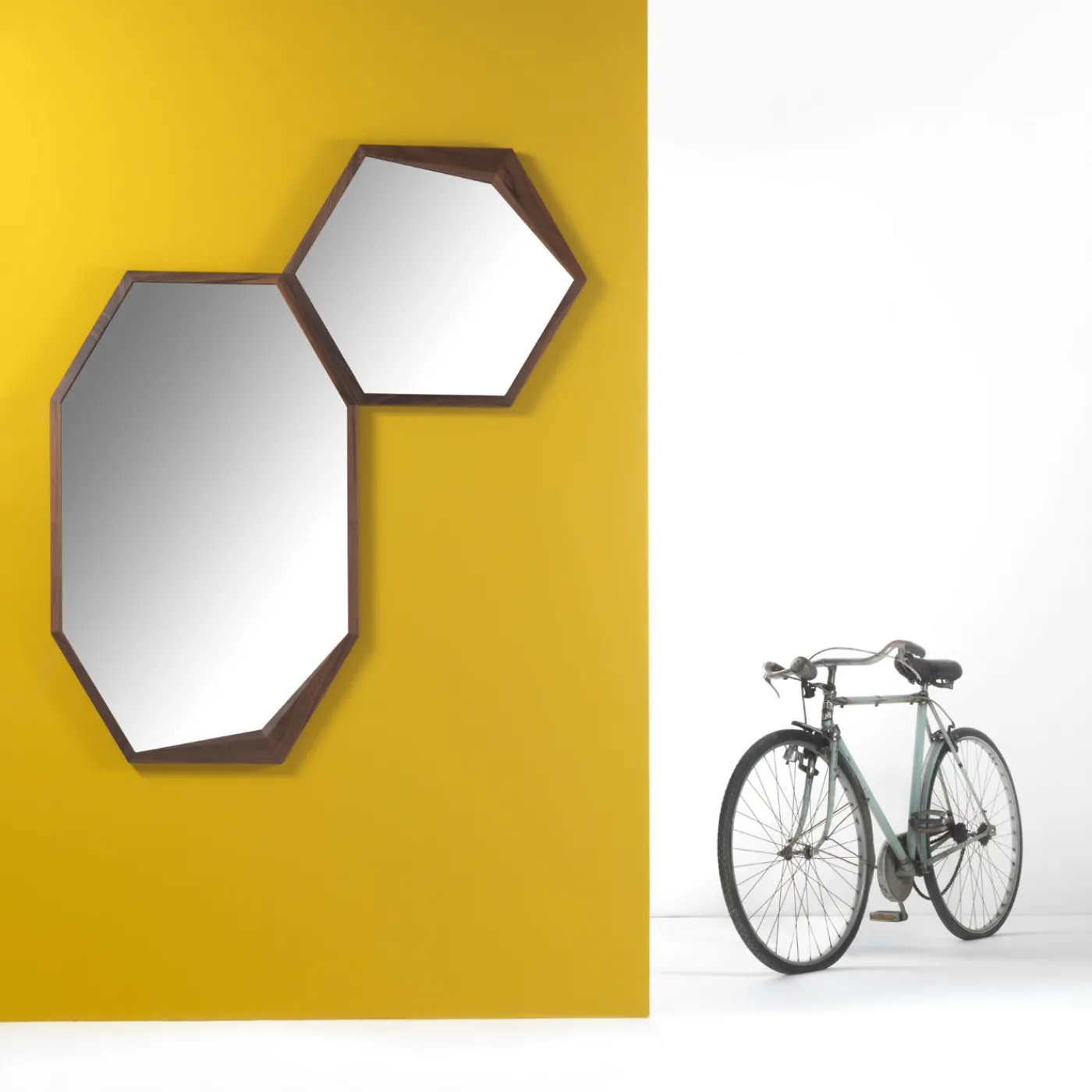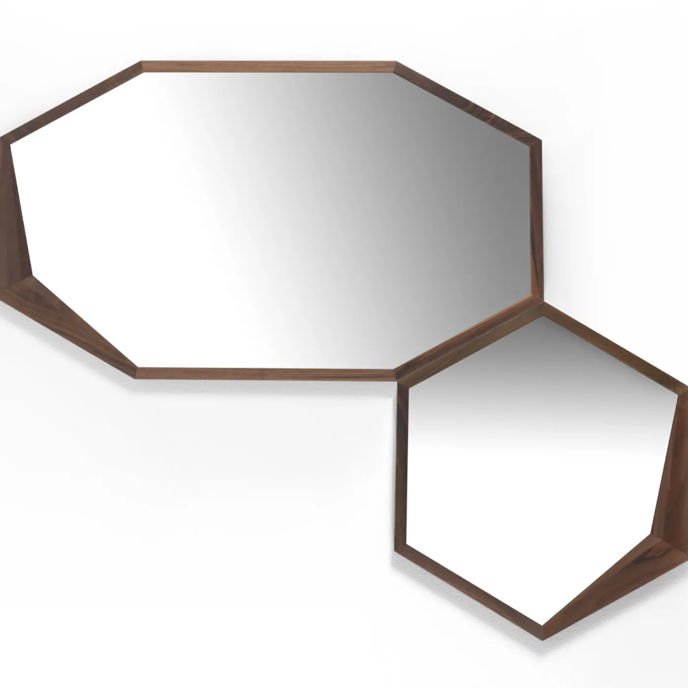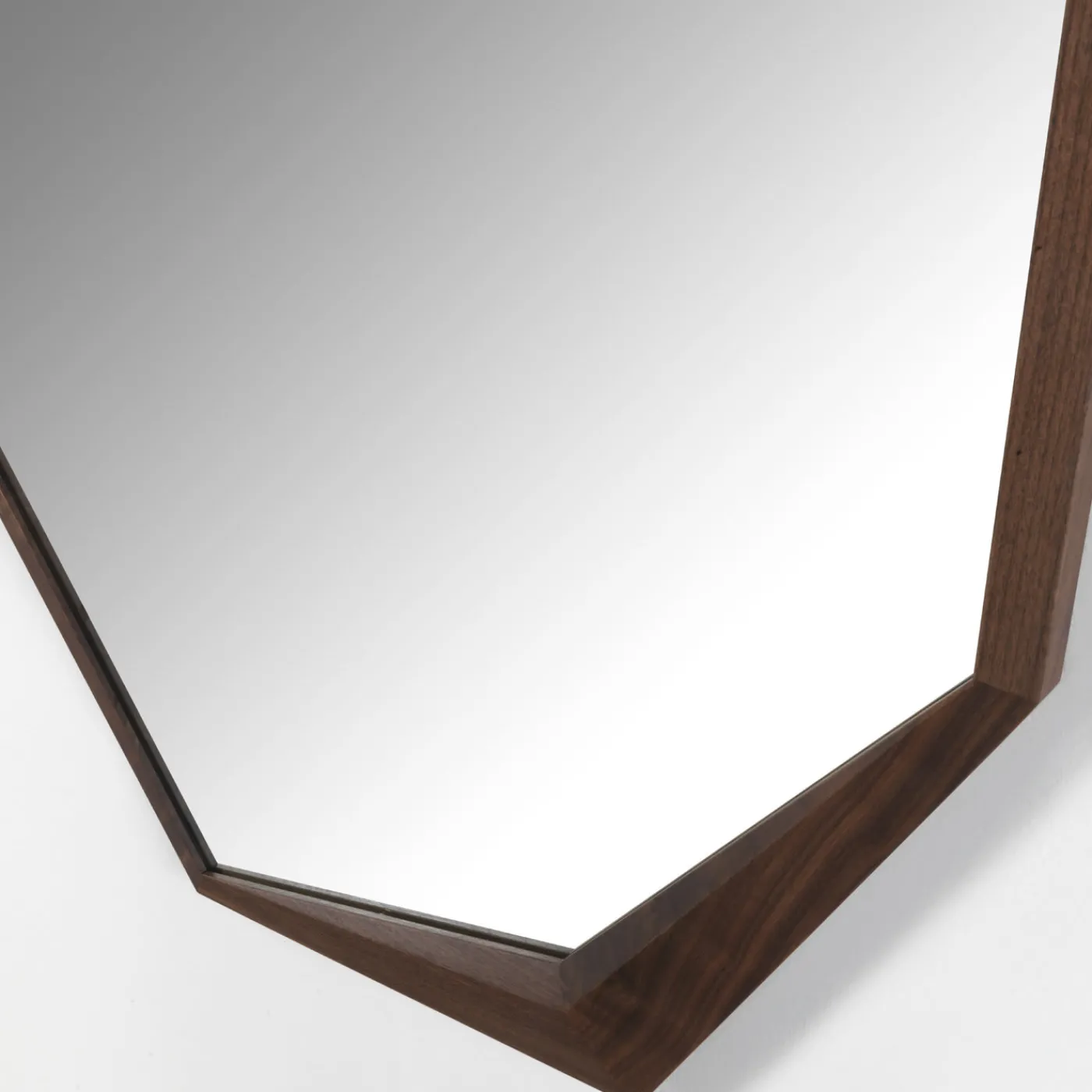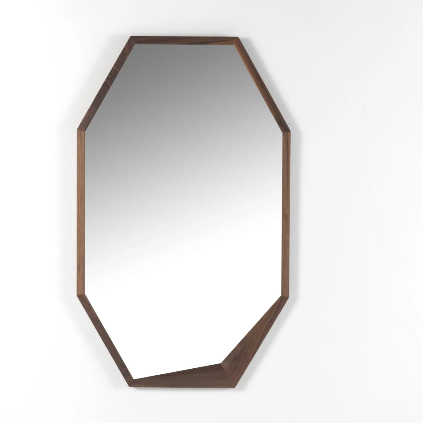 Questo sofisticato specchio ha una silhouette minimalista, elegante e senza tempo. La sua cornice è in massello di noce canaletto con un affascinante dettaglio irregolare che adorna uno degli angoli della sua forma esagonale allungata. Un pezzo adatto a qualsiasi arredamento, questo specchio sarà una splendida aggiunta a un ingresso, un soggiorno o una camera da letto. Il legno può essere sostituito con rovere massiccio. Si prega di contattare la Concierge per verificare se questo cambiamento di materiale influisce sul prezzo dell’articolo.