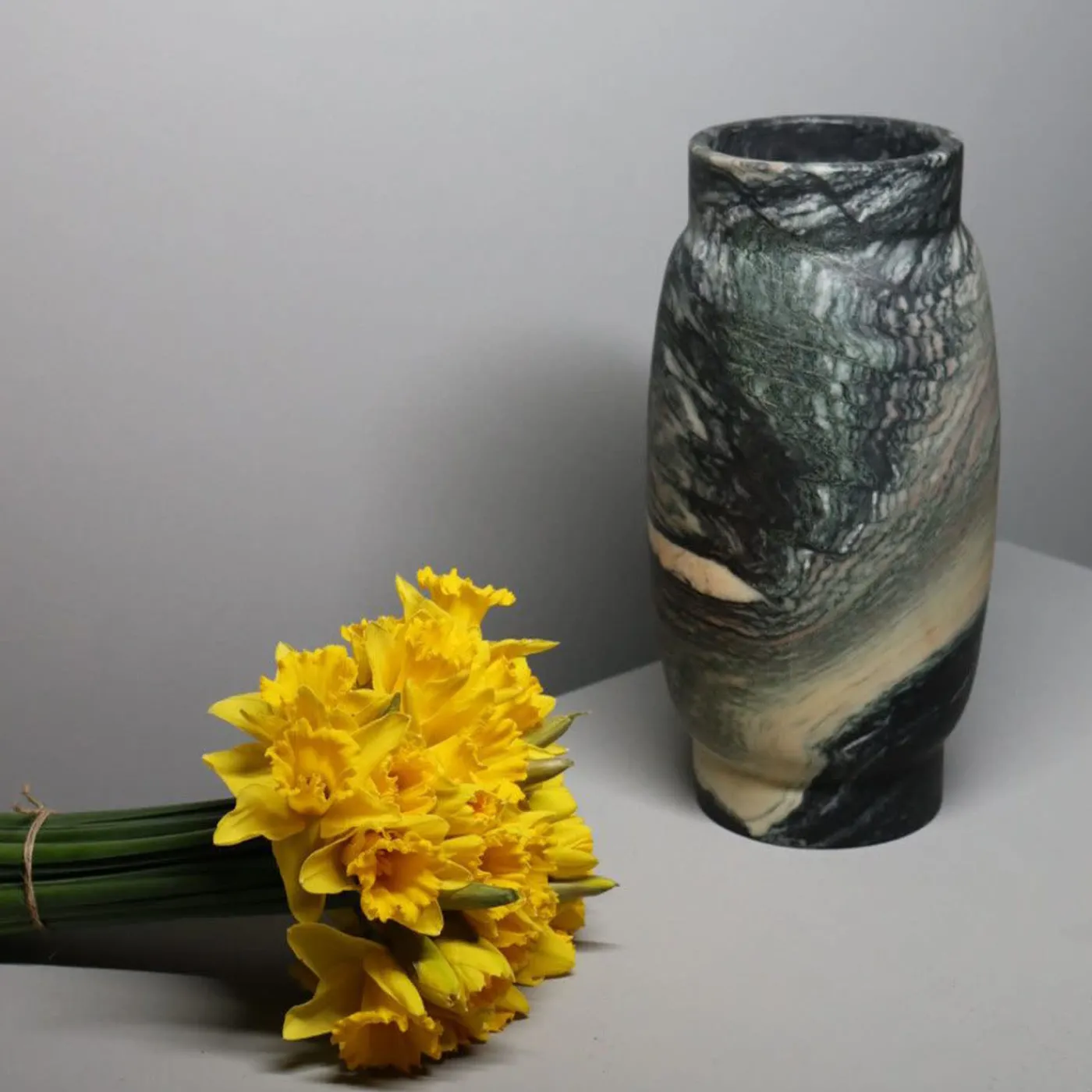 Stone è un vaso scolpito a mano nello splendido marmo Verde Luana, proveniente dall’unica cava di marmo esistente al mondo. Estratto nelle Alpi Apuane (Toscana, Italia), il marmo Verde Luana è una pietra con uno sfondo scuro attraversato da venature sottili e spesse di colore verde e multicolore. La sua finitura liscia lo rende particolarmente piacevole da tenere e toccare e le sue grandi venature naturali lo rendono ipnotico alla vista. Qui più che mai, ogni vaso è un pezzo unico.