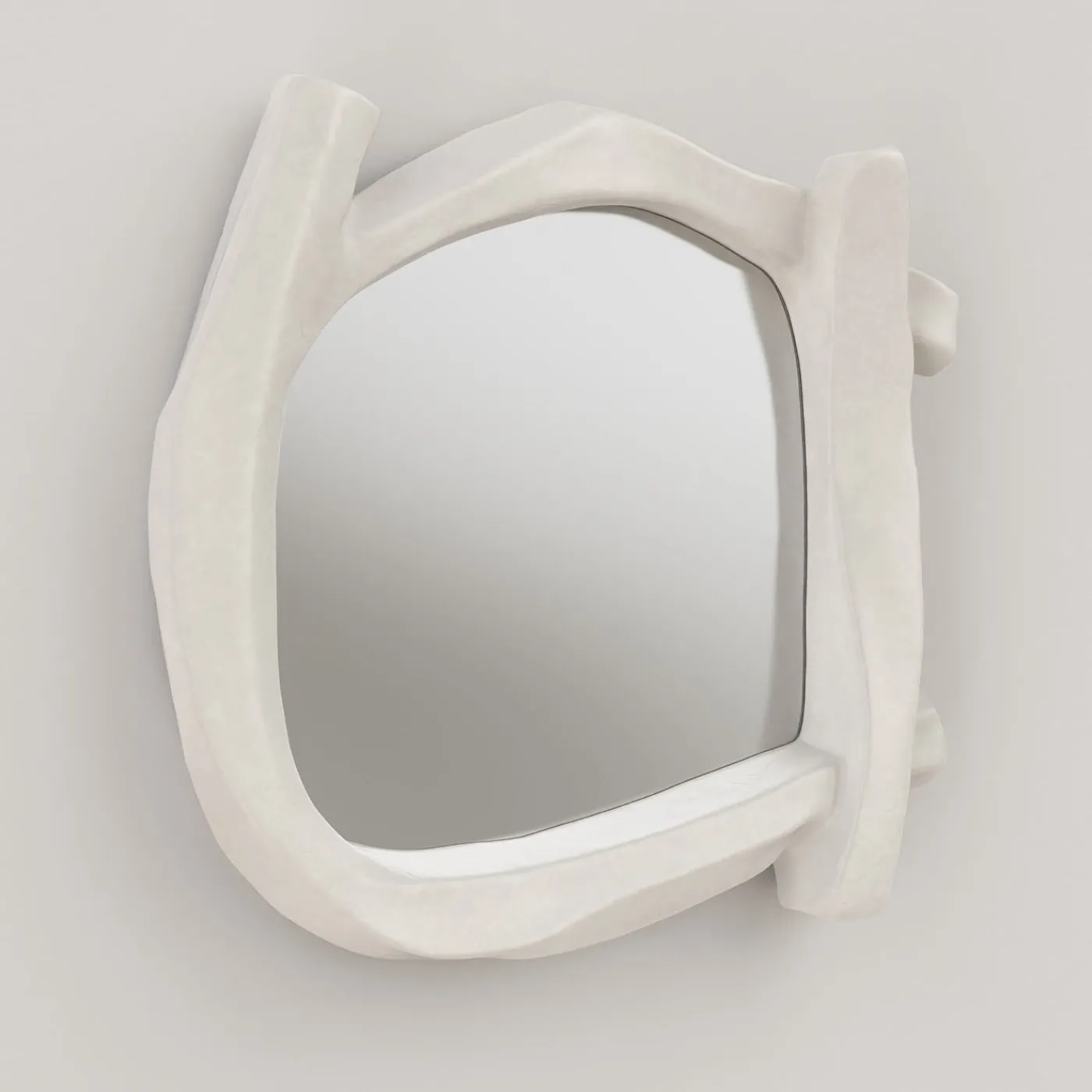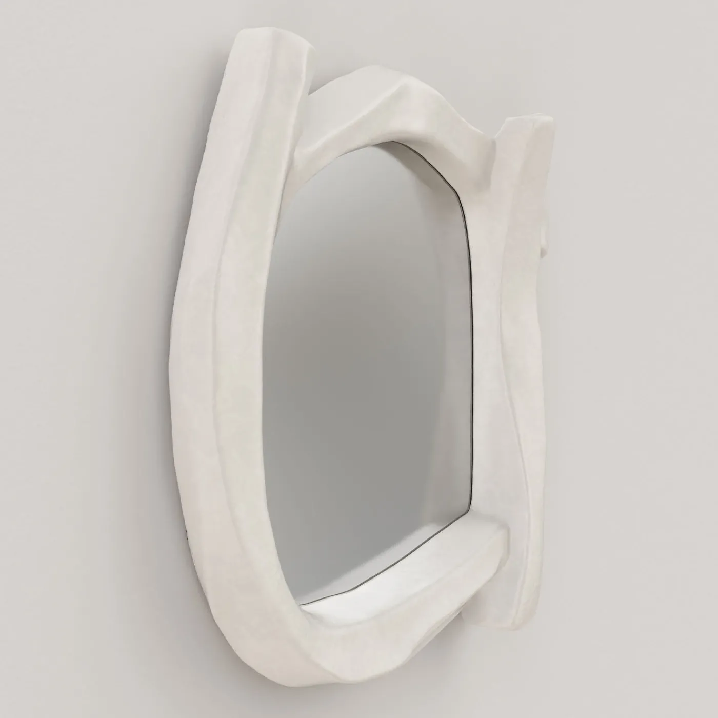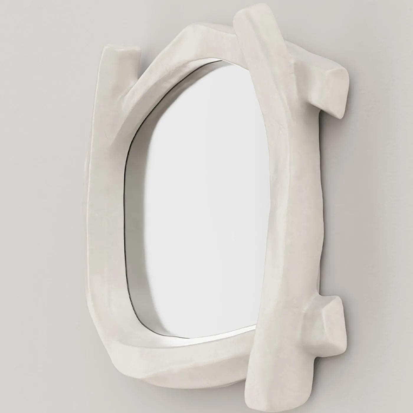 Grande specchio da parete caratterizzato da una cornice tridimensionale e scultorea che aggiunge profondità e interesse visivo all’ambiente. Rifinita a mano con più strati di stucco, la cornice presenta una superficie materica e irregolare che ne accentua il carattere artistico. Il design distintivo trasforma lo specchio in un elemento decorativo di forte presenza, capace di valorizzare con eleganza una varietà di contesti interni.