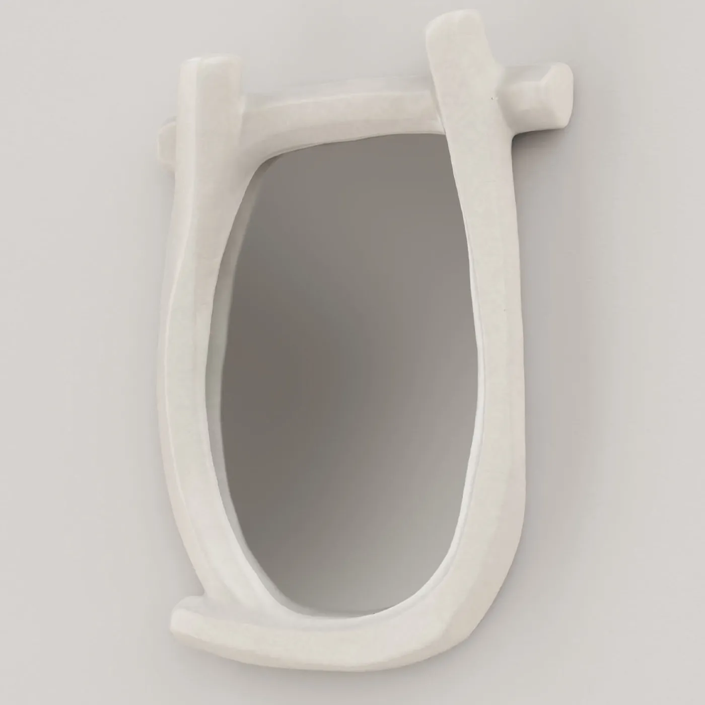 Specchio da parete caratterizzato da una cornice tridimensionale scolpita che conferisce profondità e carattere materico all’ambiente. Realizzata a mano con più strati di stucco, la cornice presenta una superficie volutamente irregolare e tattile. Pensato per essere sia uno specchio funzionale che un elemento decorativo di forte impatto, questo pezzo arricchisce lo spazio con la sua forma scultorea e la finitura artigianale.