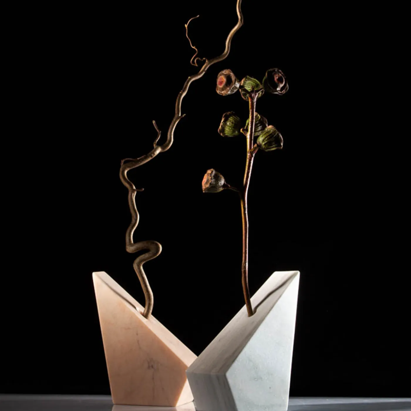 Ricco di fascino contemporaneo, questo affascinante vaso presenta un design scultoreo simile a un prisma. Realizzato in marmo Portogallo rosa satinato, con eleganti venature sui lati lisci e inclinati, l’intero processo di lavorazione è eseguito a mano da esperti artigiani. Ogni vaso è unico e le lievi differenze rispetto all’articolo raffigurato sono segno di qualità artigianale. Su richiesta sono disponibili versioni in marmo nero Marquina e Verde Prali.