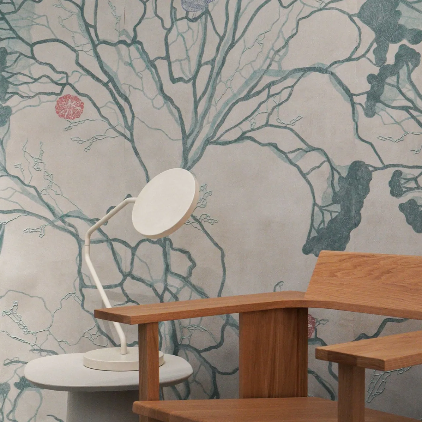Parte di una collaborazione con Marialaura Irvine, questa carta da parati di design presenta una straordinaria fusione di tecniche di smalto e gesso. Ispirata all’affascinante mondo della micologia, si trasforma in un giardino lussureggiante ornato da intricati fiori, fauna ed elementi architettonici. I toni tenui e smorzati di una tavolozza eterea esaltano la carta da parati, creando un delicato gioco di texture e colori. Il prezzo indicato si riferisce al prezzo al metro quadro.