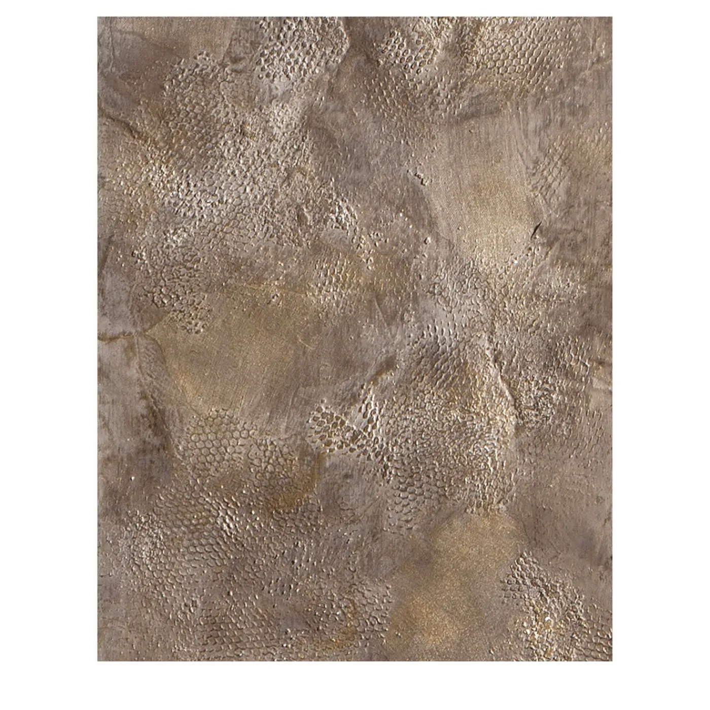 I materiali di questa carta intelata, stucco e juta, si fondono sulla tela per creare un’opera continuamente affascinante e misteriosa, dove emergono lampi di luce che accarezzano texture diverse che incuriosiscono l’occhio e il tatto.