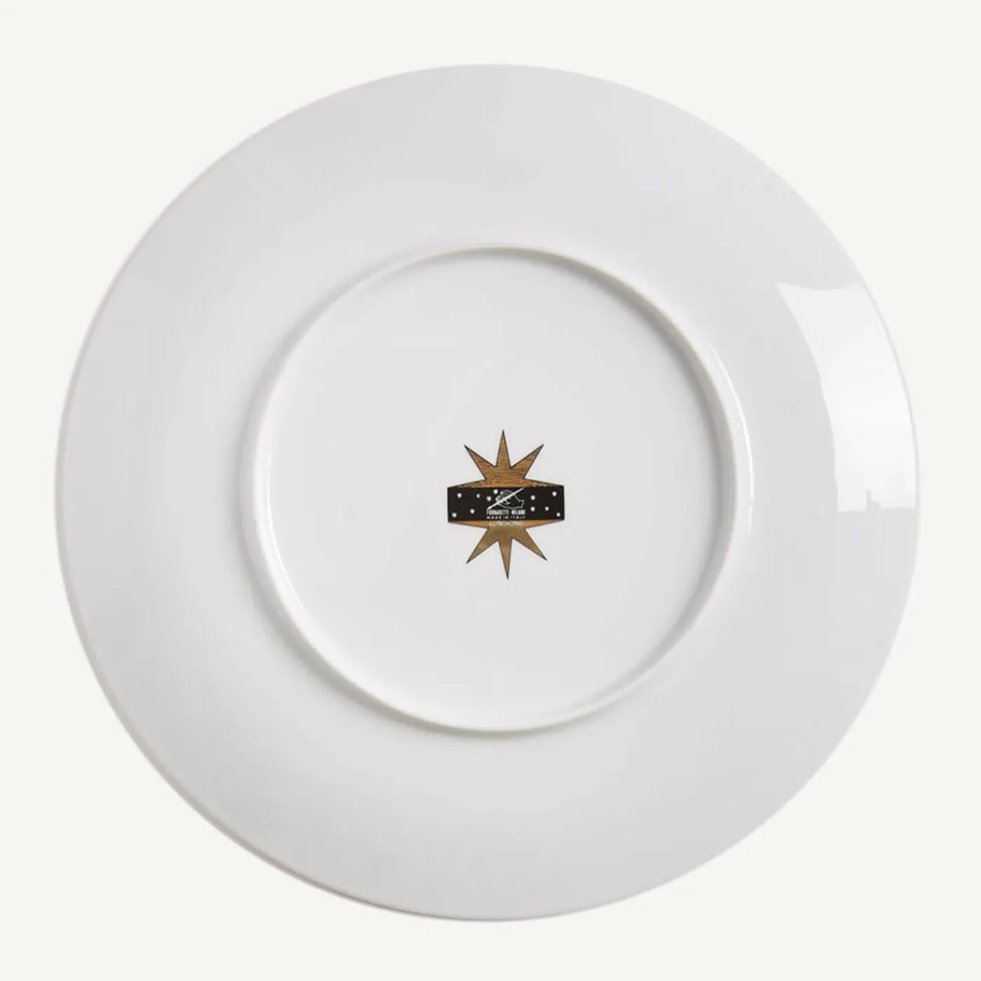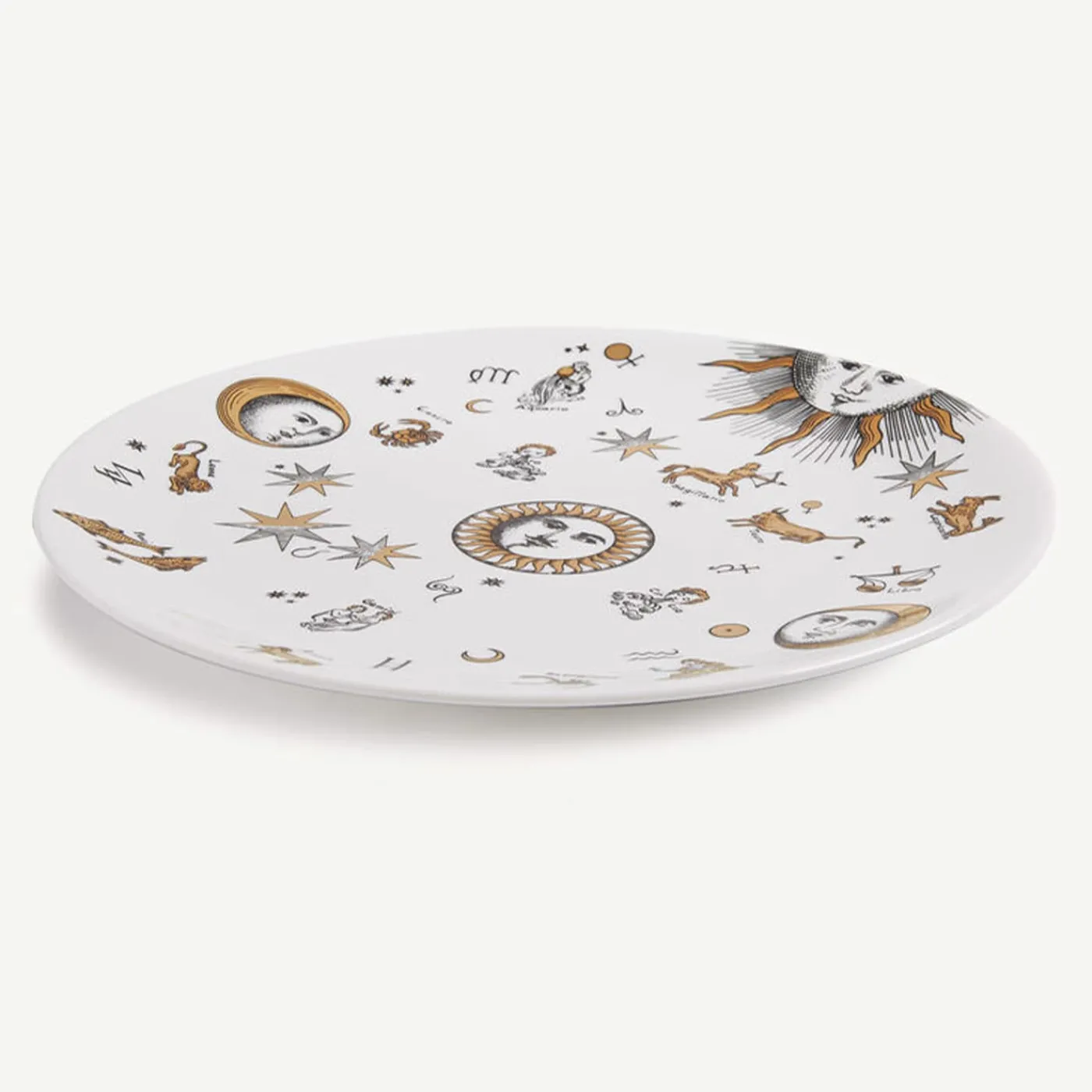 Il motivo zodiacale di Fornasetti caratterizza questo elegante piatto in porcellana decorato a mano con accenti dorati: un vero e proprio oggetto da collezione, che potrete utilizzare come ornamento per la tavola. Per la pulizia, si consiglia un panno umido senza saponi o solventi. Eventuali piccole differenze tra creazioni simili sono il risultato della lavorazione artigianale e attestano l’unicità di ogni prodotto.