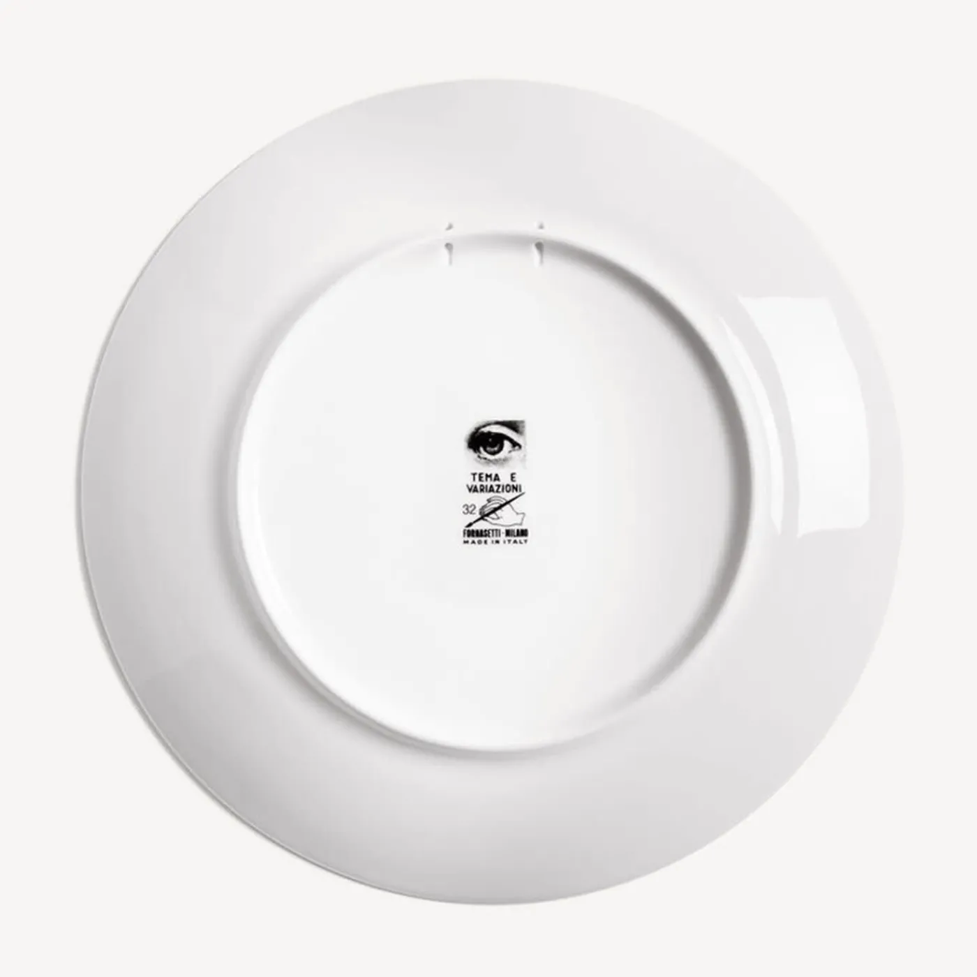 I tratti essenziali del volto di Lina Cavalieri risaltano su questo piatto in porcellana decorato a mano con accenti dorati della celebre serie Tema e Variazioni. Vero e proprio oggetto da collezione, può essere utilizzato come piatto da parete, grazie alla presenza di due fori sul retro, ma anche come pezzo ornamentale per la tavola. Per la pulizia, si consiglia di utilizzare un panno umido senza saponi o solventi.