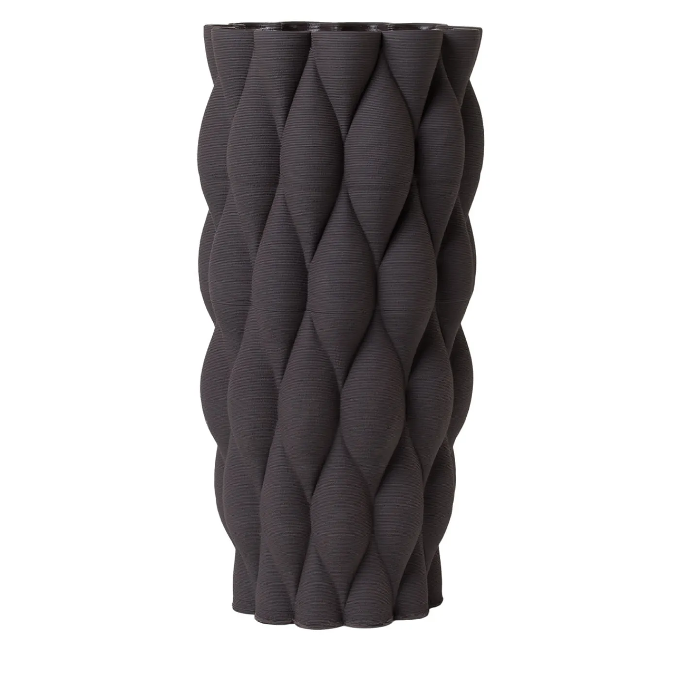 Il vaso New Delhi Black fa parte della collezione di vasi Mitti presentata alla Milano Design Week Fuorisalone 2021, ispirata a un viaggio in India. Il suo design reinterpreta le texture ispirate alle dune di sabbia, con un esterno grezzo dal tocco tessile che contrasta con uno smalto interno trasparente che garantisce l’impermeabilità. Il pezzo fonde l’artigianato del gres con la tecnologia di stampa 3D, creando variazioni uniche in ogni vaso che ne arricchiscono la profondità visiva e l’interazione con la luce.