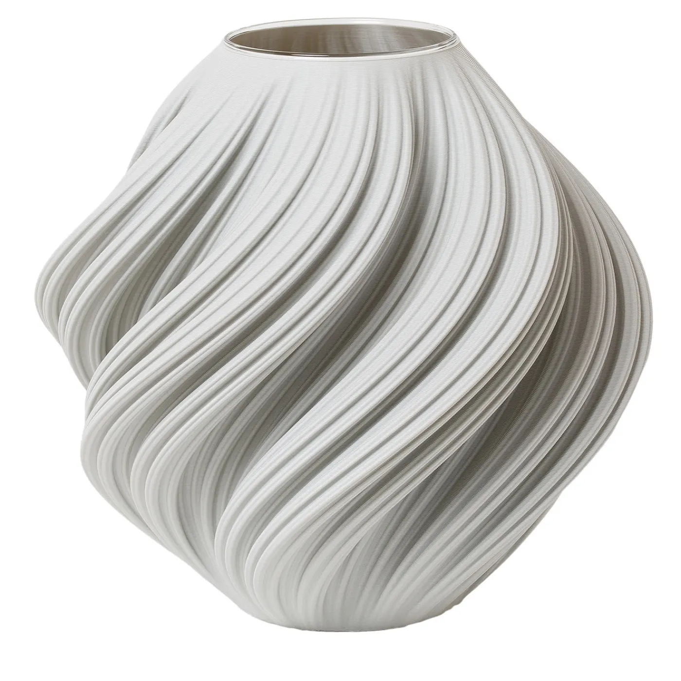 Questo vaso scultoreo presenta linee fluide e pieghettate che evocano un senso di movimento delicato ispirato all’ondeggiare dei tessuti. Realizzato in PLA biodegradabile, una termoplastica atossica derivata da risorse rinnovabili come l’amido di mais, il vaso combina sostenibilità e design artistico. Include un contenitore interno in vetro, poiché l’esterno non è resistente all’acqua. Disponibile in una tonalità grigia personalizzabile, questo pezzo si adatta all’arredamento contemporaneo con un’enfasi sulla texture sfumata e sui materiali eco-consapevoli.