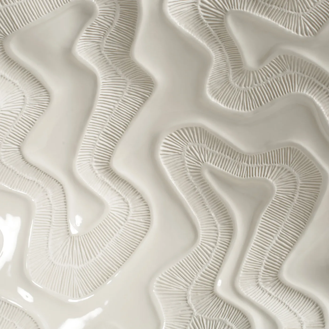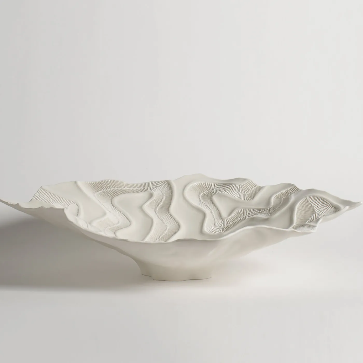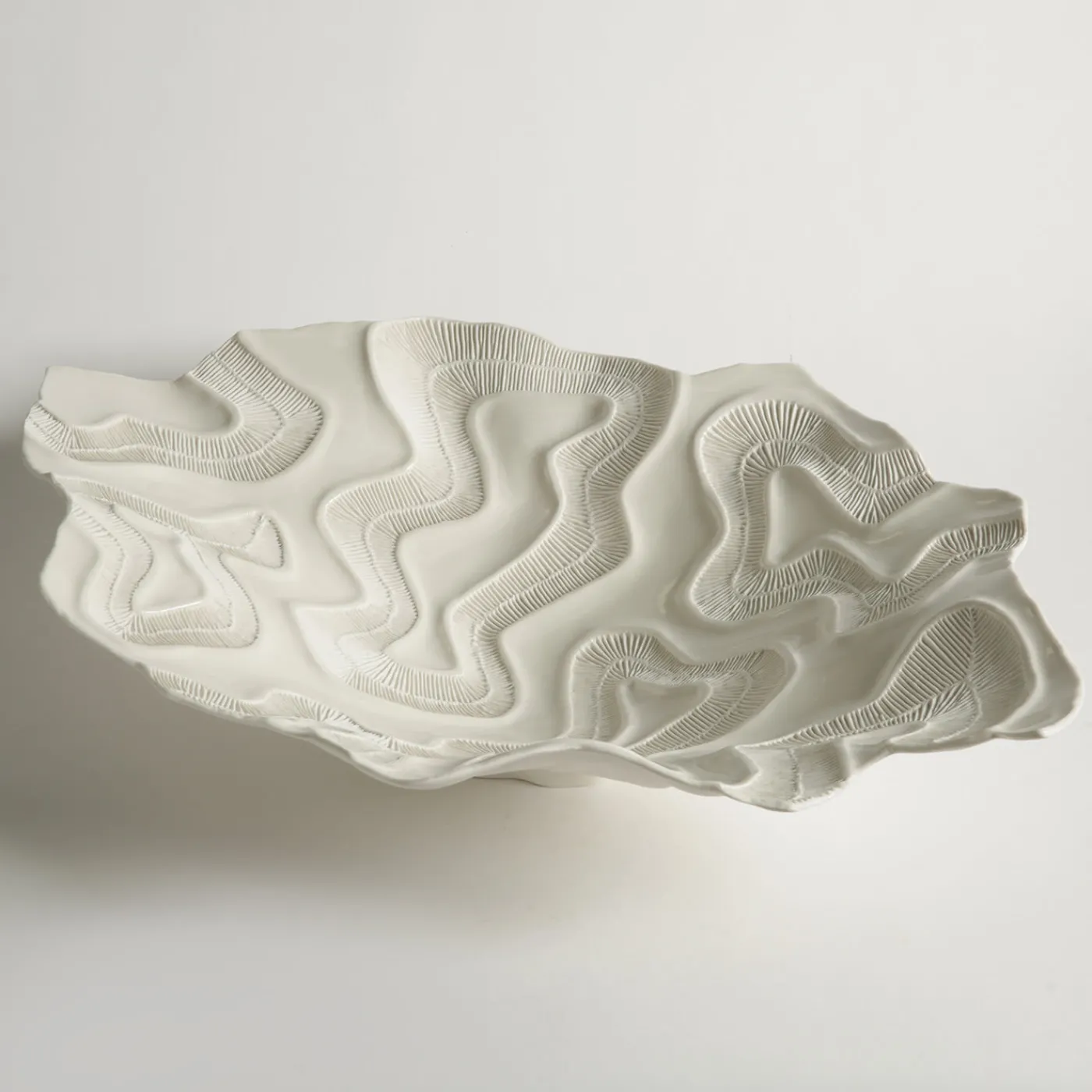 I fossili di madrepora ispirano la texture minuta che decora questo sorprendente centrotavola della collezione Fossilia. Uno stampo meticolosamente realizzato e l’uso della porcellana fanno di questo pezzo uno squisito oggetto d’arte.