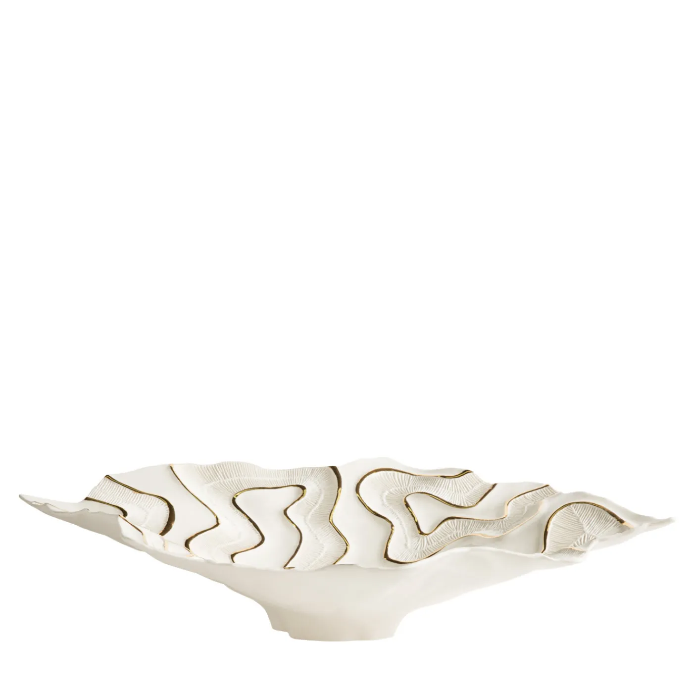 I fossili di madrepora ispirano la texture minuta che decora questo sorprendente centrotavola della collezione Fossilia. Uno stampo meticolosamente realizzato e l’uso della porcellana fanno di questo pezzo uno squisito oggetto d’arte. I dettagli in oro 23k sono applicati a mano, rendendo questo pezzo ancora più prezioso.