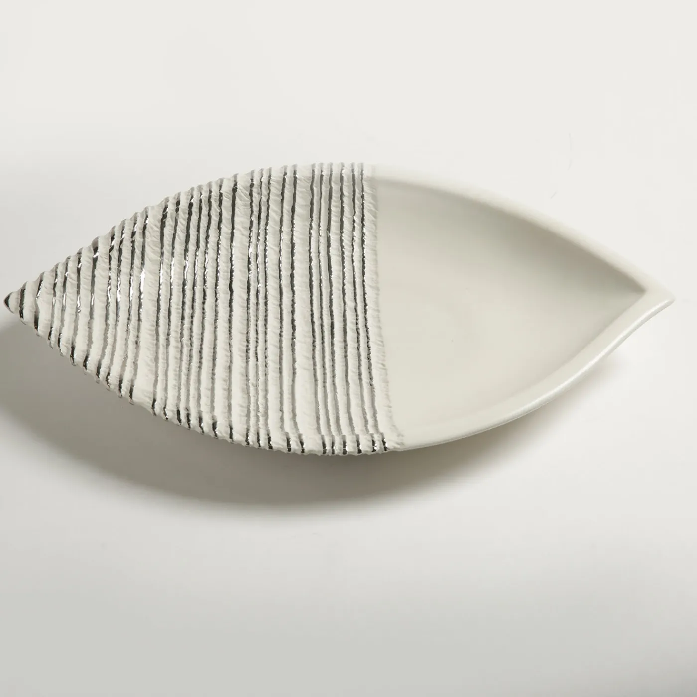 Questo squisito centrotavola in porcellana combina un design sinuoso con la preziosità degli accenti di platino applicati a mano che ne evidenziano la consistenza unica, rendendolo un sorprendente oggetto d’arte.