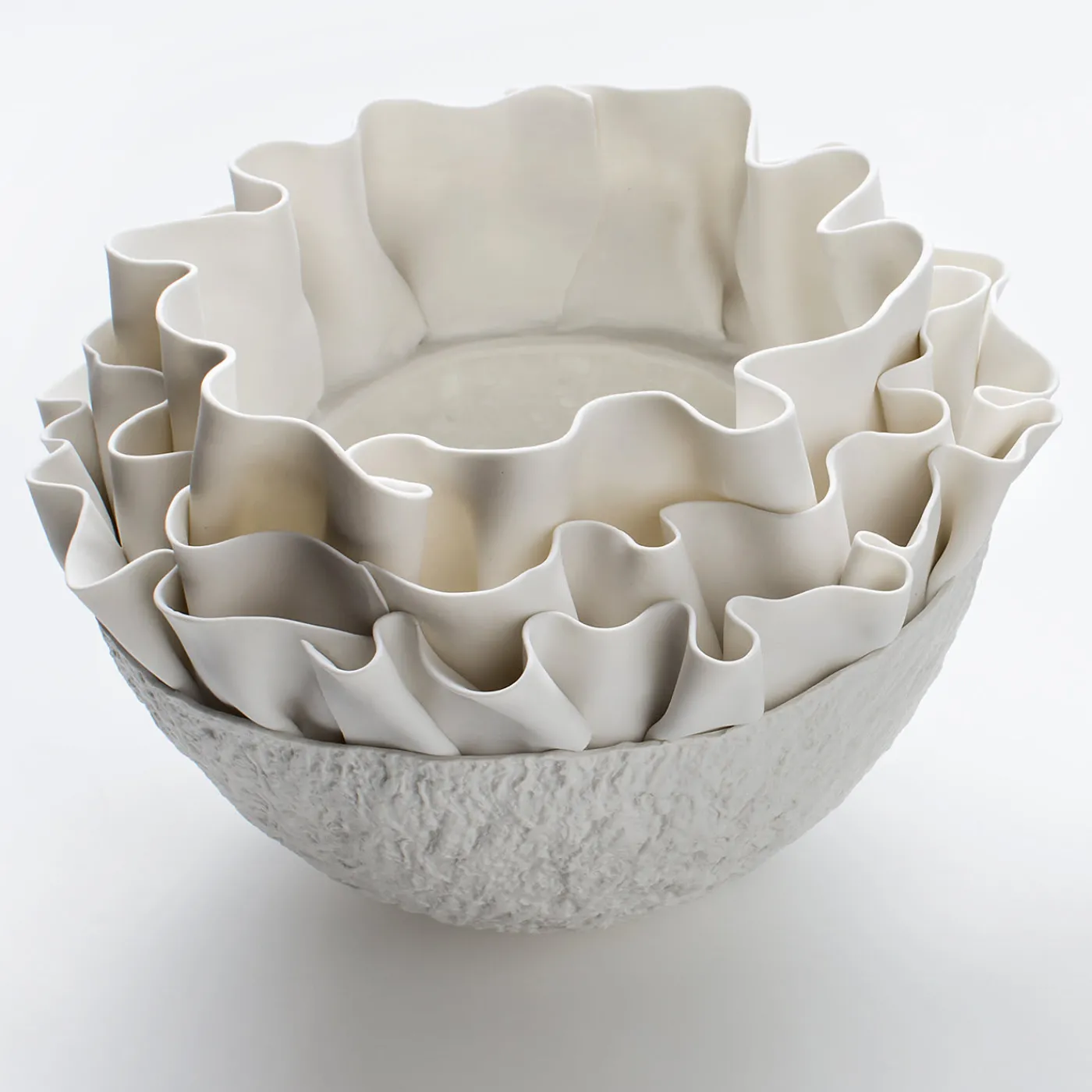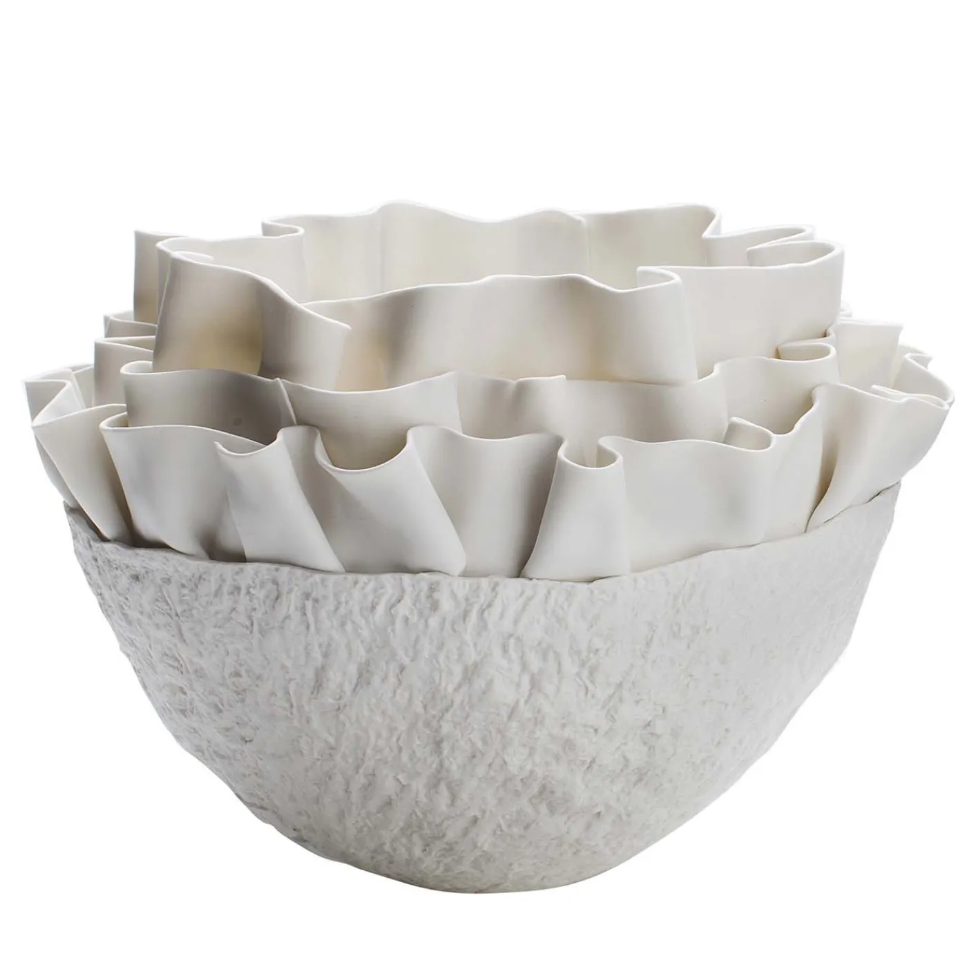 Celebrando il mare e le sue creature uniche, questa ciotola è una spettacolare combinazione di texture e volumi. È stata presentata alla Milano Design Week 2019 e realizzata interamente in porcellana bianca. La ciotola vanta una superficie irregolare e organica, con una serie di onde concentriche in porcellana biscuit bianca come la neve che le conferisce un fascino incantevole.