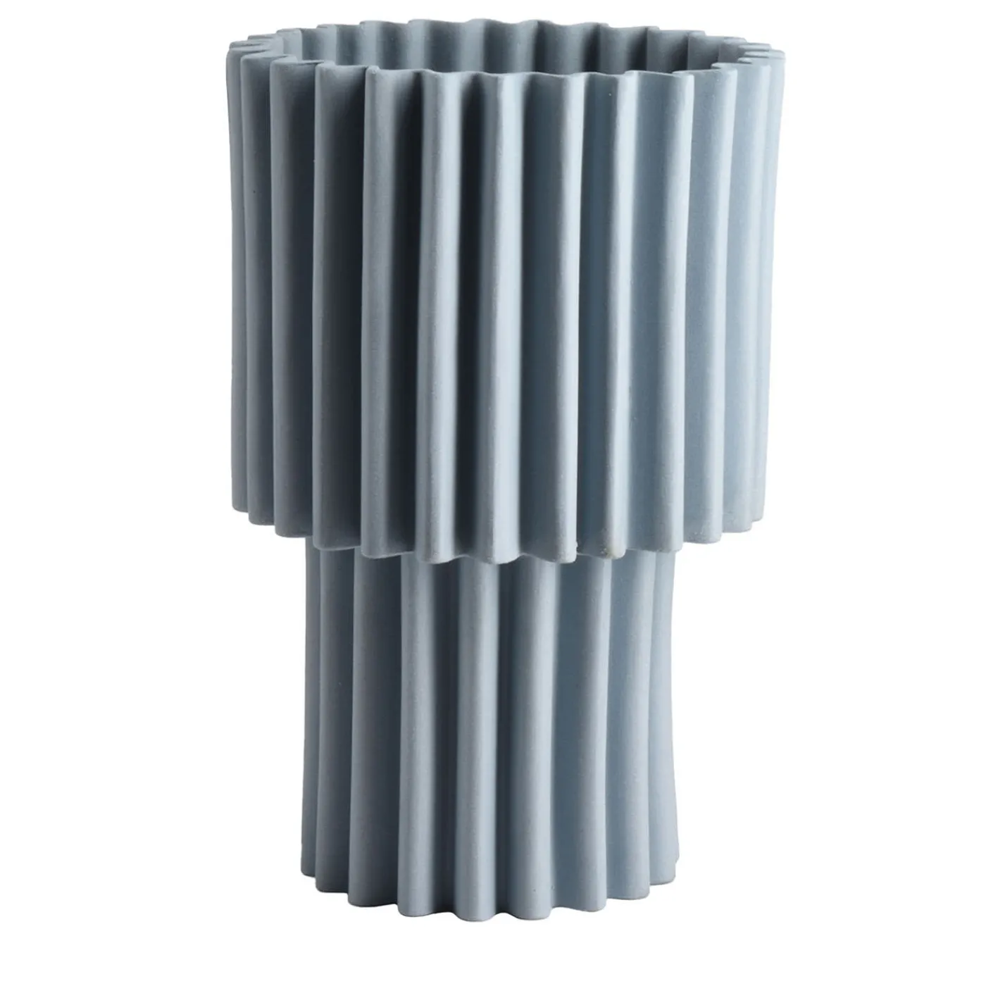 Parte della Collezione Le Torri, questo vaso blu ceruleo è un sofisticato progetto in terracotta che si ispira ai volumi maestosi delle torri. Un intenso disegno ondulato ne modella la silhouette, dando vita a un accattivante gioco di luci e ombre che ne sottolinea ulteriormente il carattere scultoreo. Il pezzo prende forma in uno stampo artigianale prima di essere rifinito a mano.