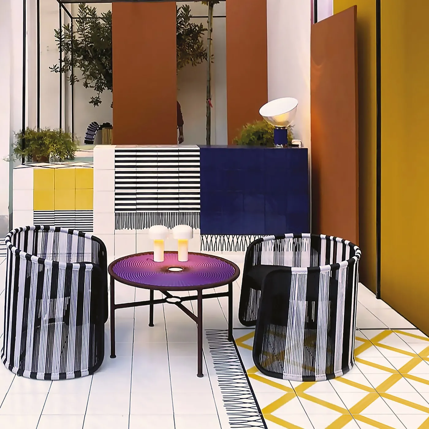Disegnato da Giuliano Andrea dell’Uva, l’accattivante ed elegante motivo a rete blu dipinto a mano sulle piastrelle di ceramica che compongono questa splendida composizione si armonizza elegantemente con la forma dinamica e leggermente intrecciata delle frange, conferendole un valore molto realistico. La superficie totale misura 200 x 100 cm. Immancabile in un arredamento moderno e sofisticato, è interamente personalizzabile in base alle preferenze personali – si prega di contattare il Concierge per i dettagli.