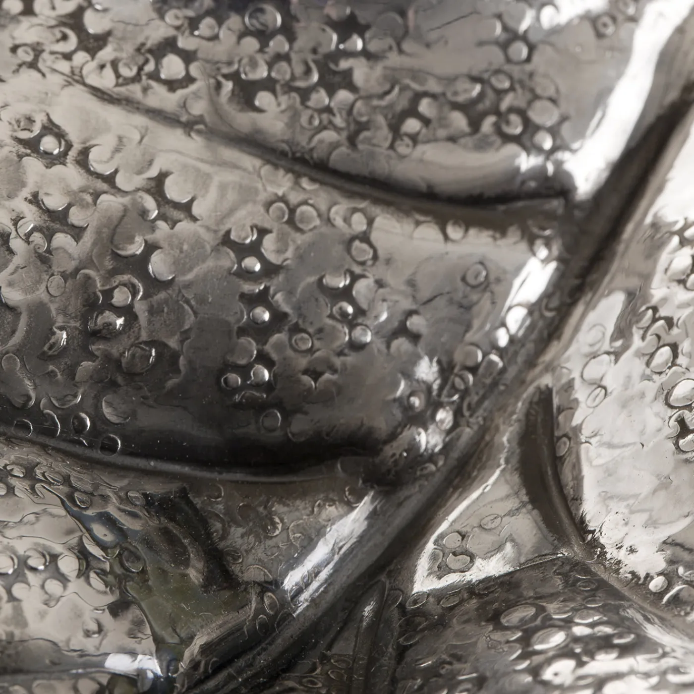 Singola foglia di agrifoglio in argento sterling scintillante. Questo squisito pezzo è stato sbalzato e inciso interamente a mano dai maestri argentieri della Fratelli Lisi, mostrando notevoli dettagli sulla lama, sulla nervatura centrale e sulle venature.