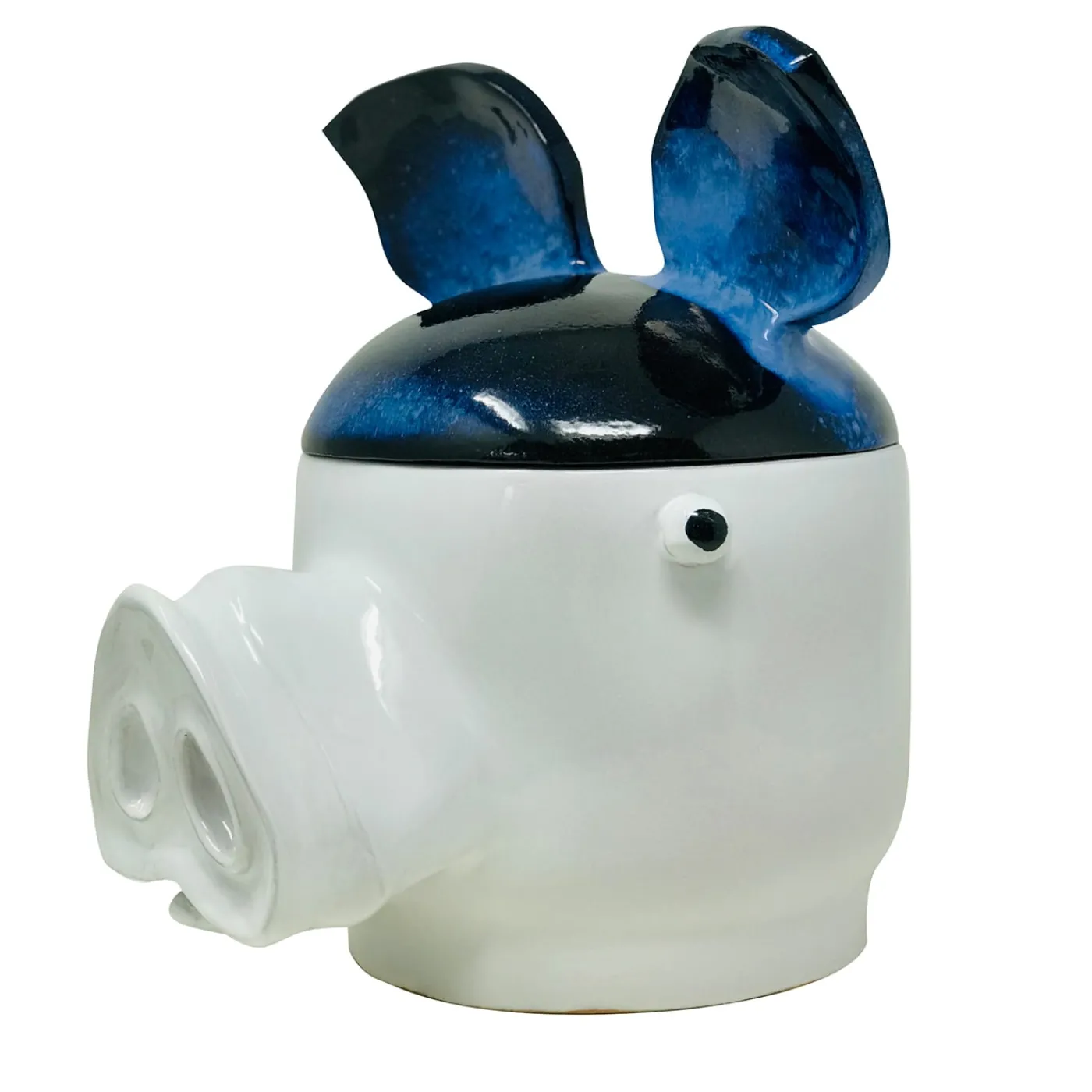 Un pezzo di arredamento funzionale con uno spiccato carattere eccentrico, questo design in ceramica dalla forma ironica di una testa di maiale servirà come originale contenitore per bon-bon e biscotti. Interamente modellato a mano con la tradizionale tecnica dell’arrotolamento, viene cotto prima a 960° per trasformare l’argilla in terracotta e poi a 930° per sigillare gli smalti bianchi e blu che accentuano rispettivamente la base e il coperchio. Chiedete al Concierge le personalizzazioni dei colori e i prezzi della variante piccola.