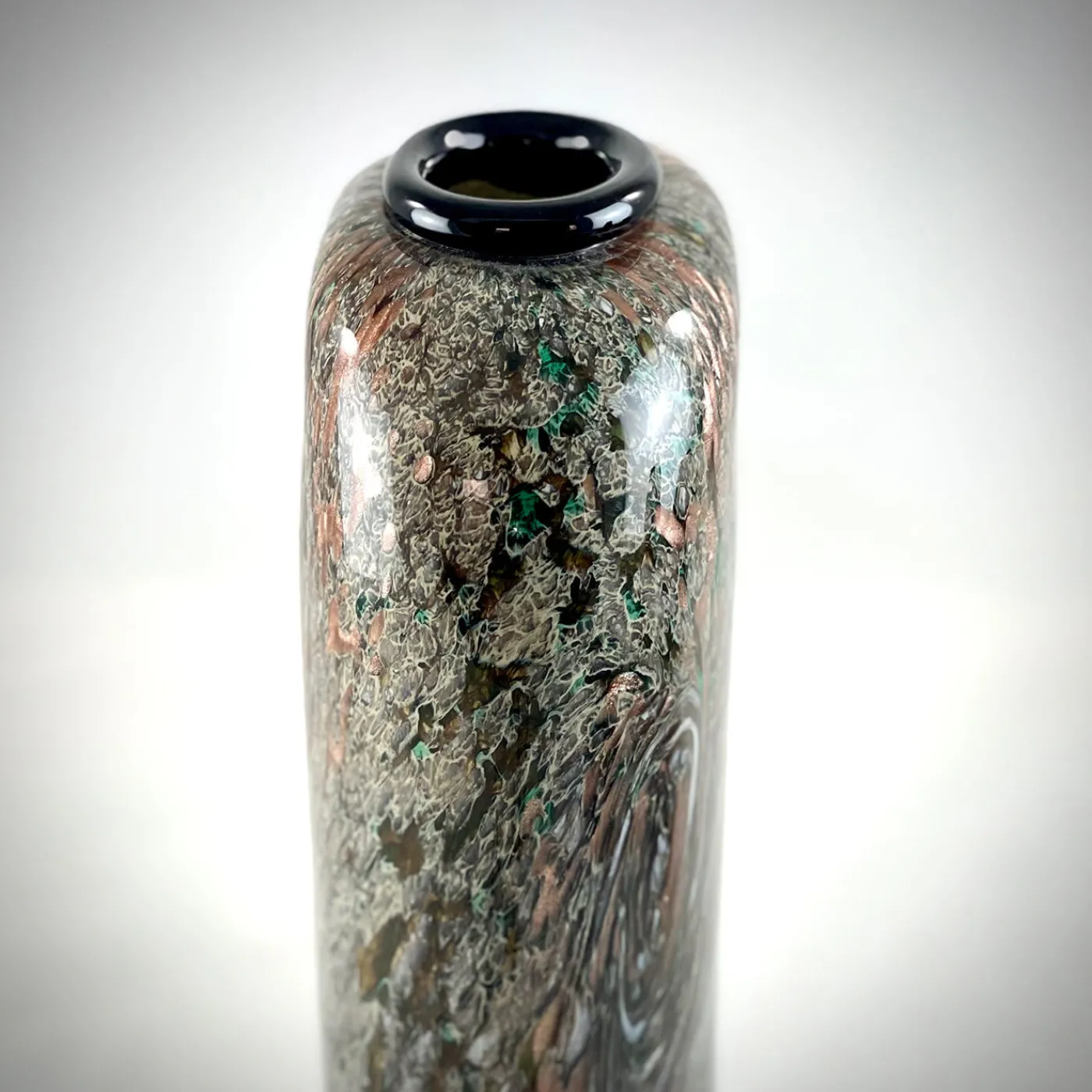 Creata con una miscela di colori in polvere, tra cui la famosa avventurina, su una base di vetro avorio con applicata, a caldo, una foglia d’argento che si ossida a contatto, la massa vitrea viene sapientemente lavorata dal maestro Matteo Tagliapietra creando sulla superficie dei veri e propri disegni e volute da cui deriva il nome della collezione. Oggetti unici ed esclusivi frutto di anni di sperimentazione che innovano la grande tradizione del vetro di Murano.