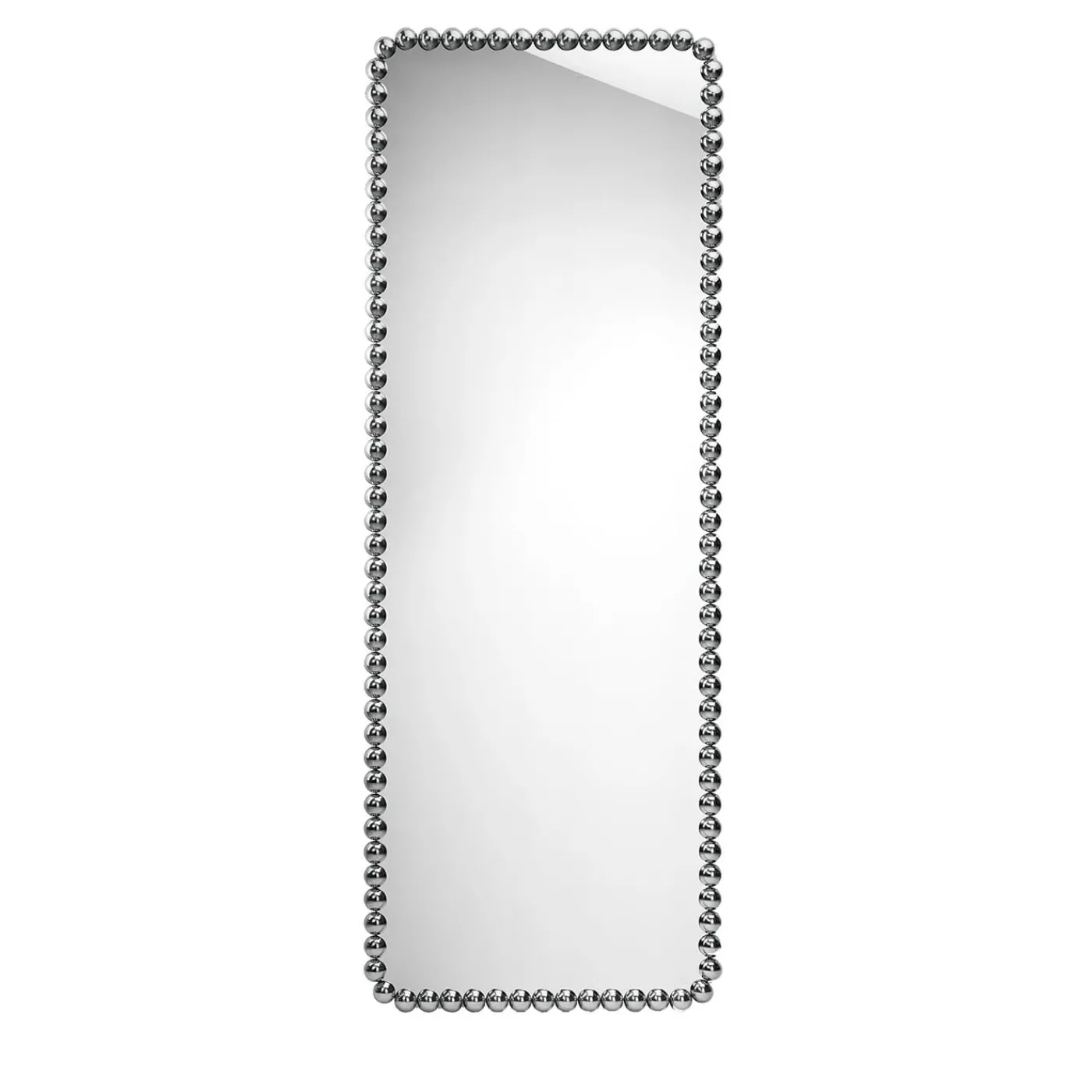 Geometrie pulite e accattivanti si fondono in questo spettacolare specchio disegnato da Nika Zupanc per la serie Gioiello, un pezzo iconico per un interno in stile contemporaneo. Elegante e luminoso, è caratterizzato da una cornice rettangolare di sfere in ottone cromato. È disponibile anche nelle finiture nero e oro e in altre forme; per le opzioni, consultare il catalogo Artemest.