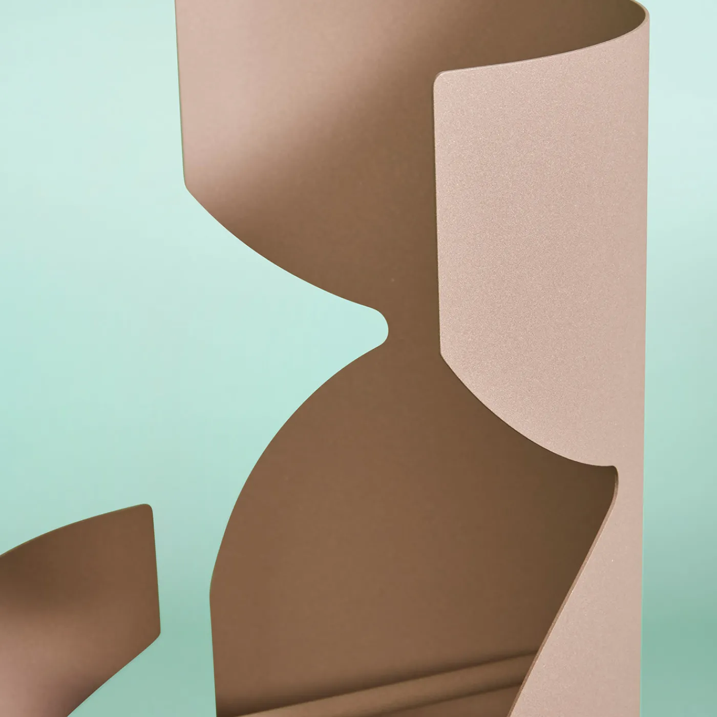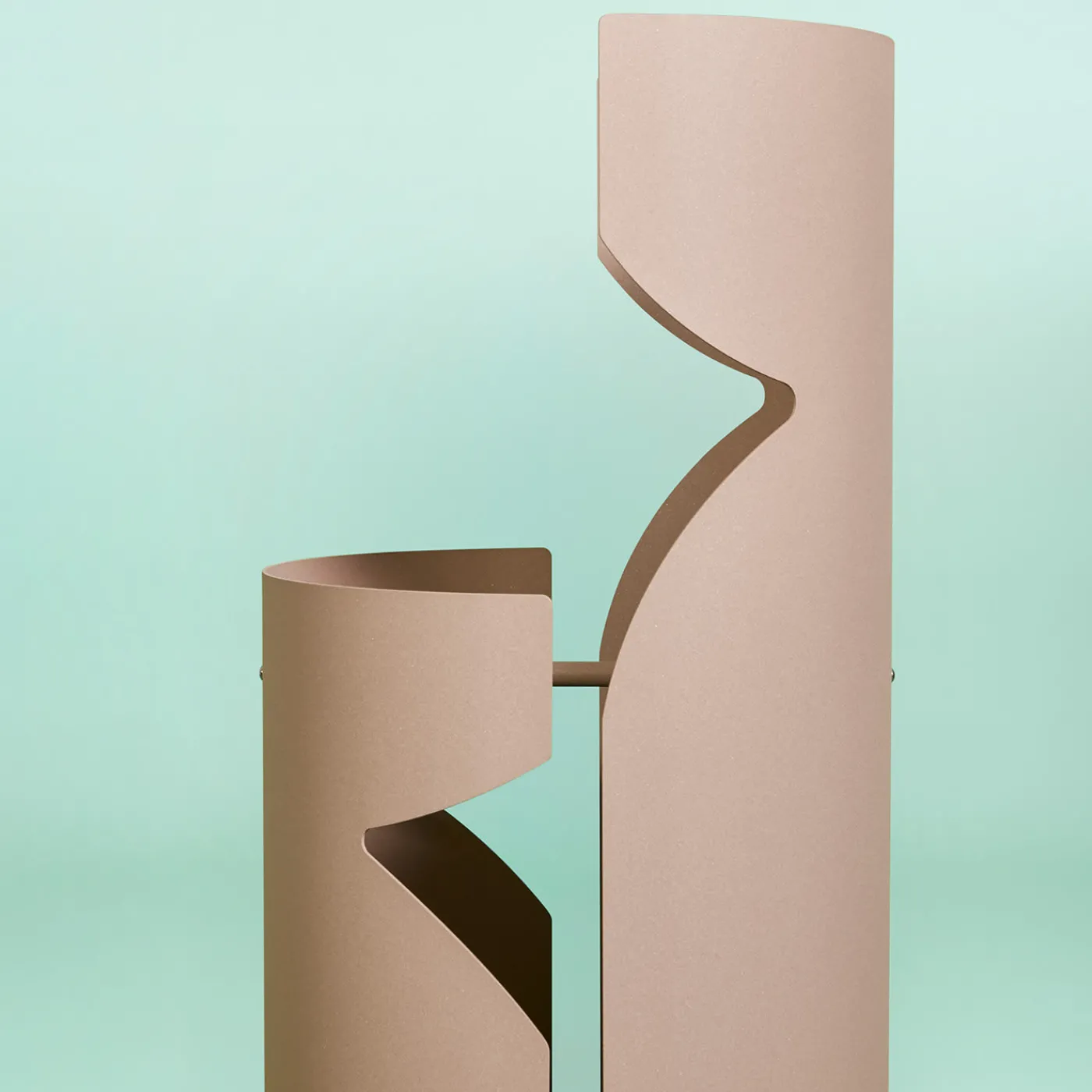 Il portaombrelli Hug Sand, disegnato da MM Company, è caratterizzato da due lastre metalliche curve che si abbracciano, formando una silhouette geometrica unica. Il suo design elegante e raffinato aggiunge un tocco distintivo agli interni della casa, offrendo al contempo una pratica custodia per ombrelli. La morbida finitura beige conferisce una presenza calda e neutra che si adatta a una varietà di arredi. Altre opzioni di colore sono disponibili nel catalogo Artemest.