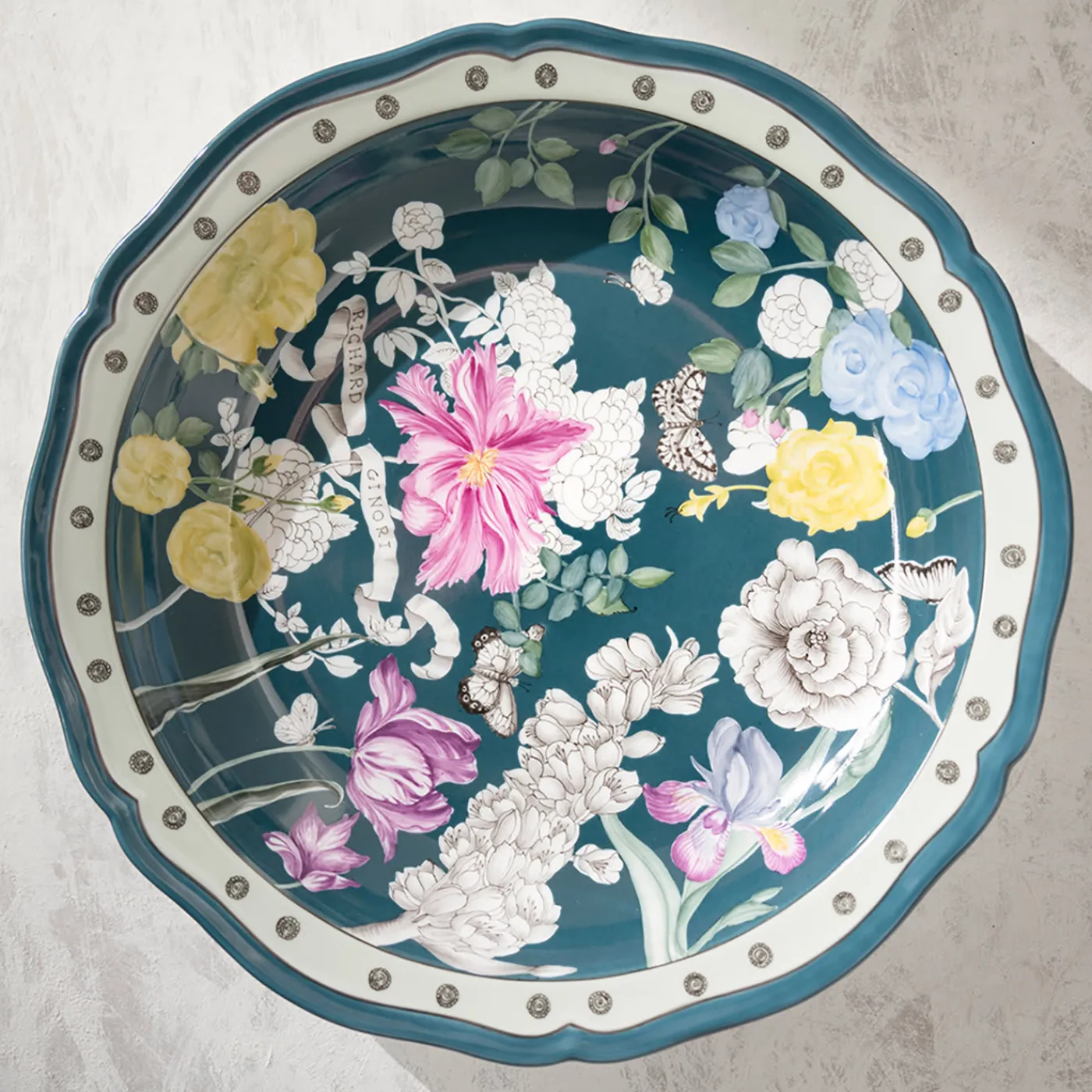 Questo straordinario centrotavola fa parte di una serie di porcellane che prende il nome dal Giardino dell’Iris di Firenze. Per creare un’immagine raffinata in qualsiasi arredamento, è interamente decorato a mano utilizzando le tecniche pittoriche della naturalista e pittrice tedesca Maria Sibylla Merian per rappresentare una composizione unica ispirata alla natura. È un oggetto d’arte decorativo e non è adatto all’uso alimentare.
