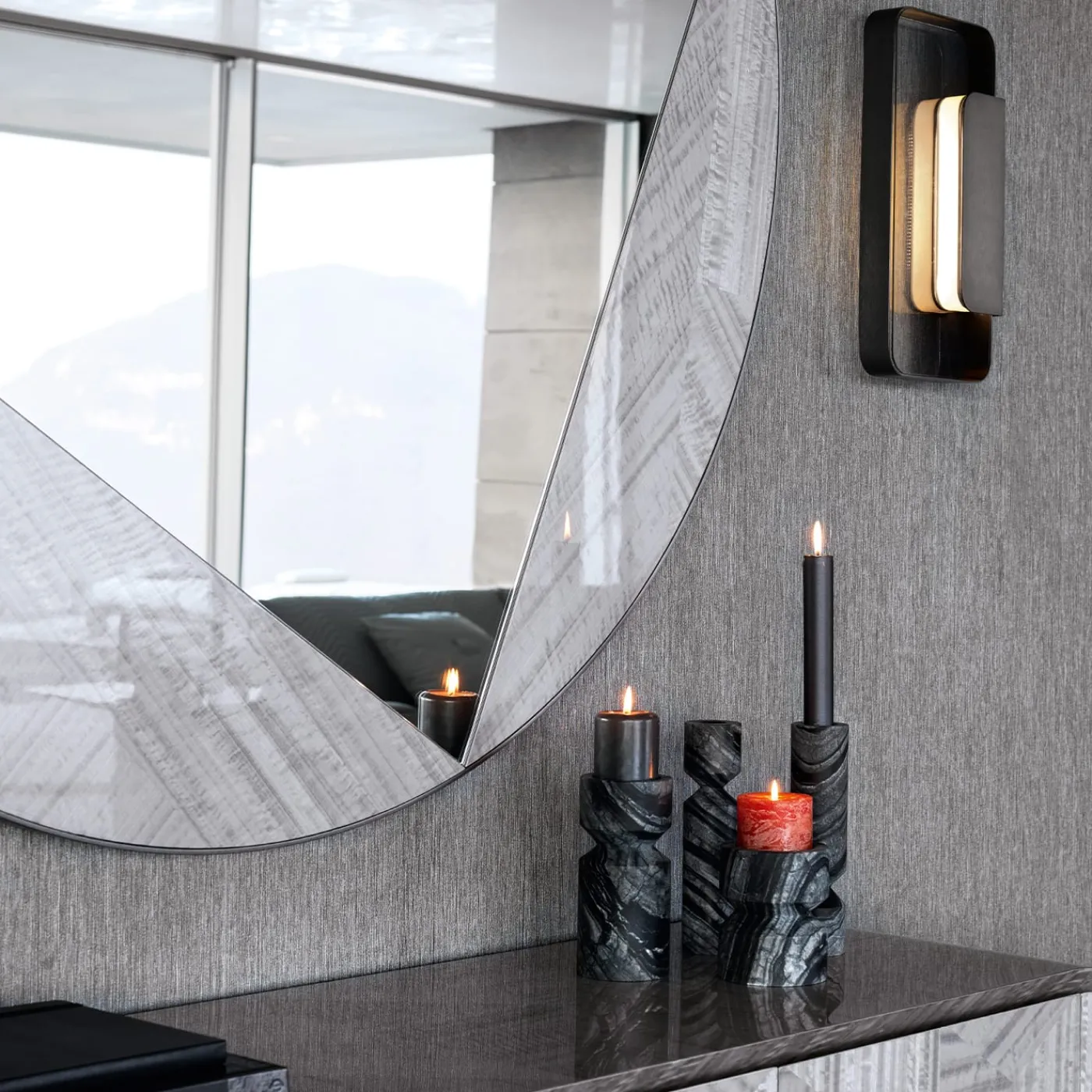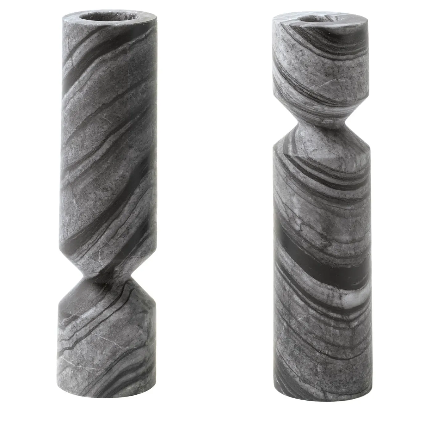 Portacandele grande in marmo nero del Kenya massiccio e opaco.