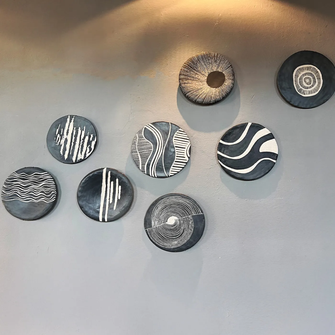 Incisioni fluide e ondulate si increspano sulla superficie di questo piatto in ceramica fatto a mano, creando un senso di movimento e profondità. Il contrasto dinamico tra bianco e nero è esaltato dalla texture incisa a mano, che rende ogni pezzo unico nel suo genere. Ideale come opera d’arte da appendere a parete o come elemento d’arredo per il tavolo, incarna l’arte moderna e l’artigianato tradizionale in una forma versatile e senza tempo.