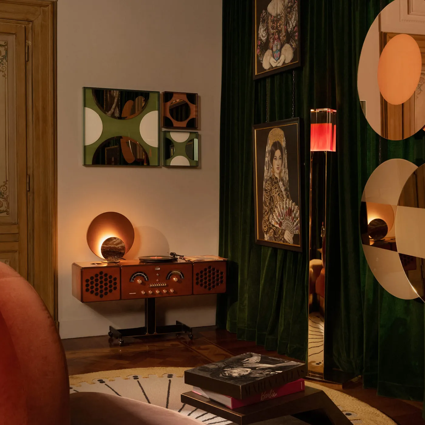 Questo specchio da parete accosta vetri riflettenti opachi, lucidi e colorati in una disposizione artistica per creare un accessorio non convenzionale e di grande impatto, che è un’opera d’arte quanto uno specchio.