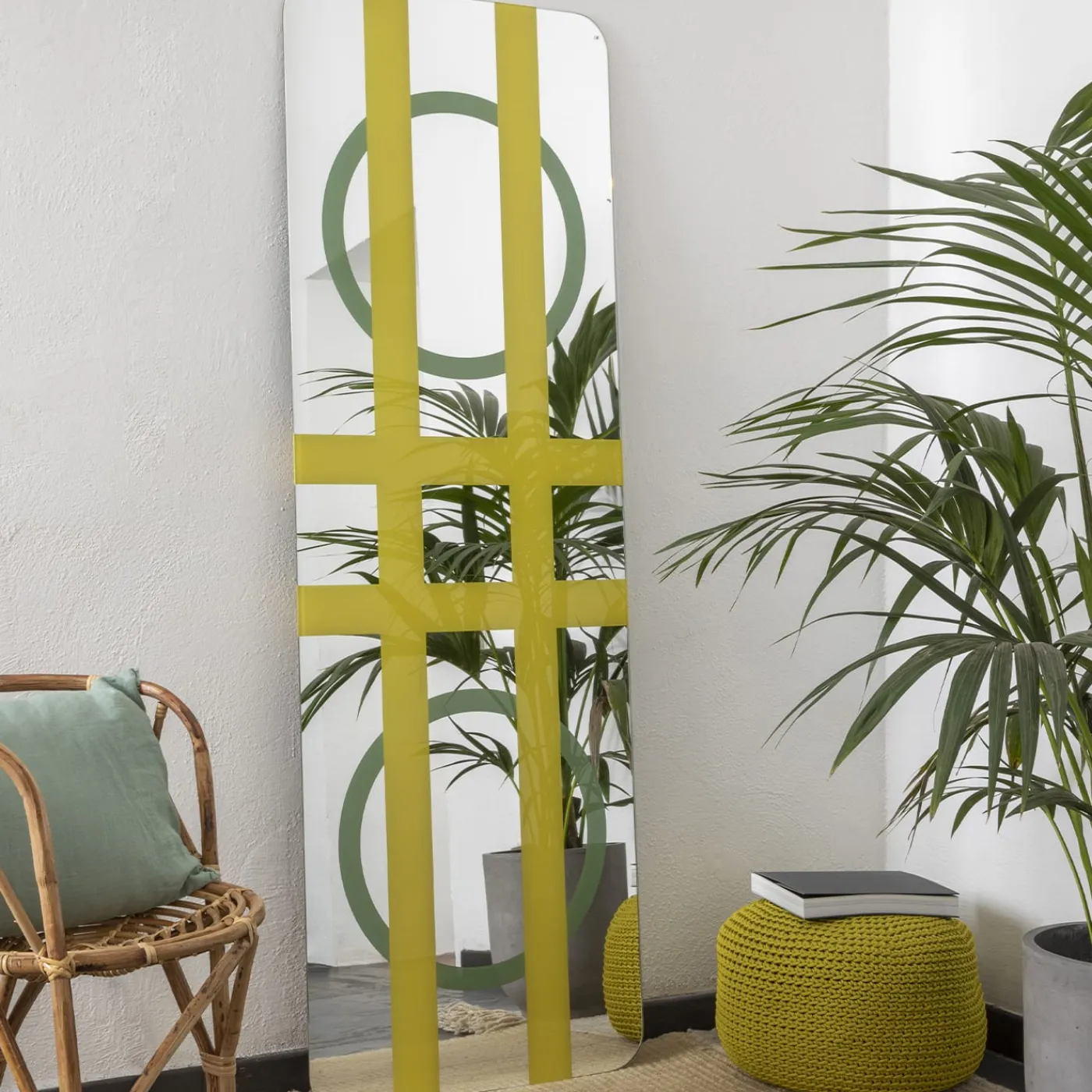 Questo specchio in vetro extra chiaro presenta un design laccato multicolore che crea un gioco dinamico di forme geometriche, tra cui cerchi e linee intersecate. Parte della serie MURALES, reinterpreta la tradizionale muratura sostituendola con superfici trasparenti e colorate, arricchite da motivi sabbiati e laccati che frammentano i riflessi in modo creativo. Personalizzabile in dimensioni e tonalità, si adatta a diversi contesti d’interni, fondendo espressione artistica e funzionalità. Per ulteriori informazioni è possibile contattare il Concierge.