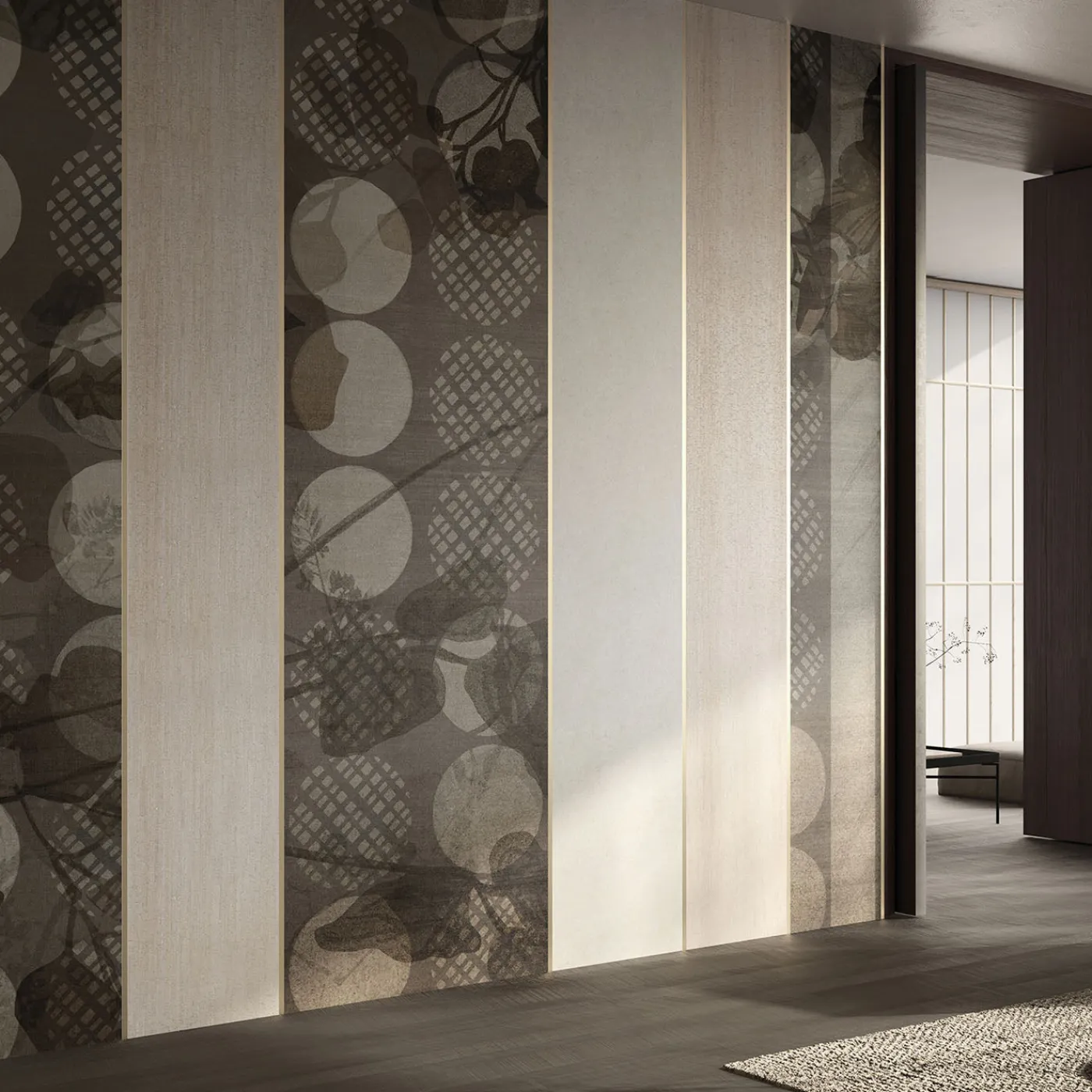 Una carta da parati raffinata caratterizzata da un sofisticato gioco di dettagli in rilievo e delicati intagli che evocano l’eleganza del pizzo antico e della tradizione artigianale tessile classica. Questo design è reinterpretato con un tocco moderno, creando un ritmo visivo bilanciato attraverso pannelli verticali alternati di motivi e trame sottili. Ideale per aggiungere profondità e lusso discreto alle pareti interne senza sovraccaricare lo spazio.