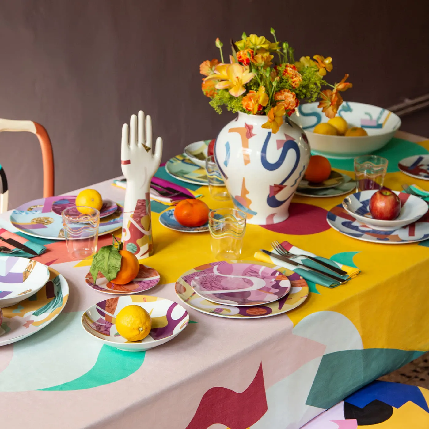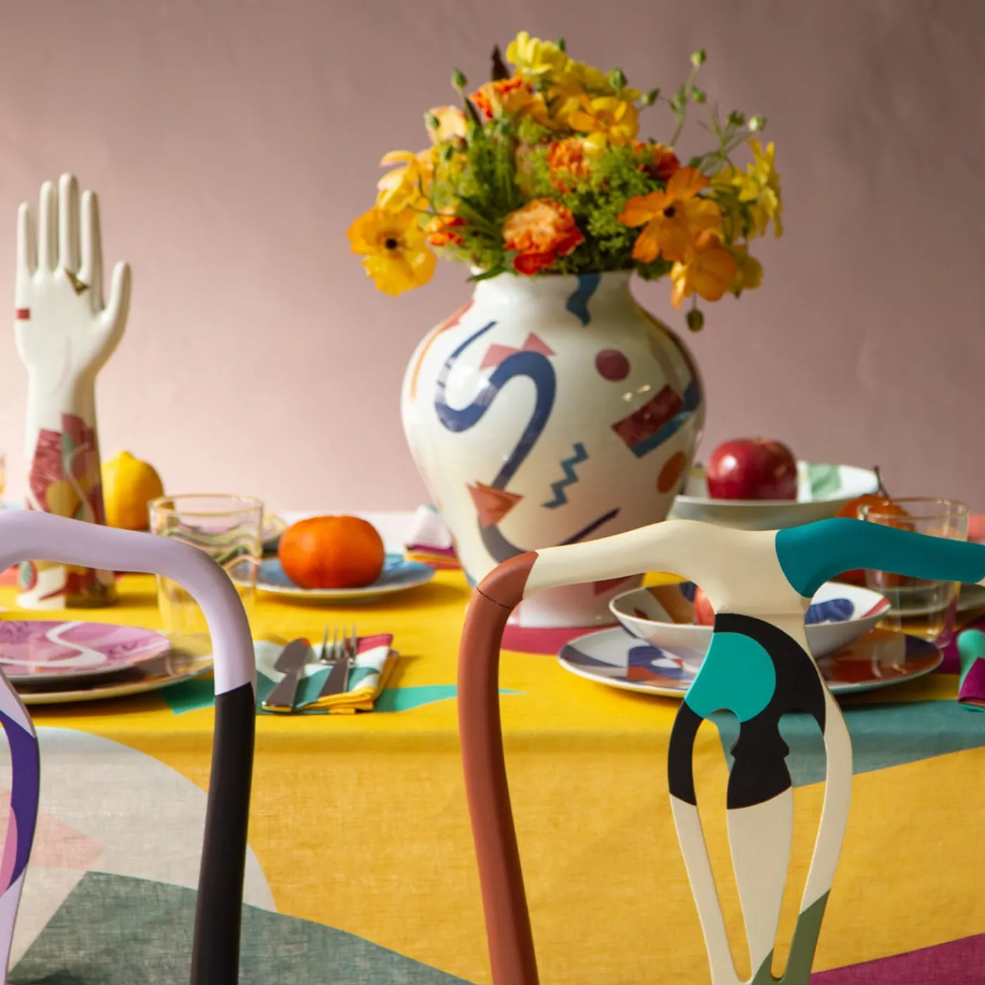 Vito Nesta e Alessandro Guerriero hanno unito le loro forze per creare la collezione Alchimie per il brand Grand Tour. Diversi prodotti, dalle porcellane ai tessuti, vengono così resi immortali nel tempo dal tocco di uno dei maestri del design italiano, fondatore dello studio Alchimia del 1976. Colori vibranti, contrasti forti, forme geometriche e astratte, di goni tipo, si incastonano e dialogano fra di loro, creando dei piccoli universi di pura bellezza visiva. Il tocco finale apportato all’interno di queste grafiche è l’uso di diverse texture che si uniscono al disegno a tinte piatte, rendendolo ancora più accattivante e divertente. Questo vaso anfora in porcellana bianca è caratterizzato dalla presenza di diverse forme ch rendono la sua superficie dinamica e moderna.