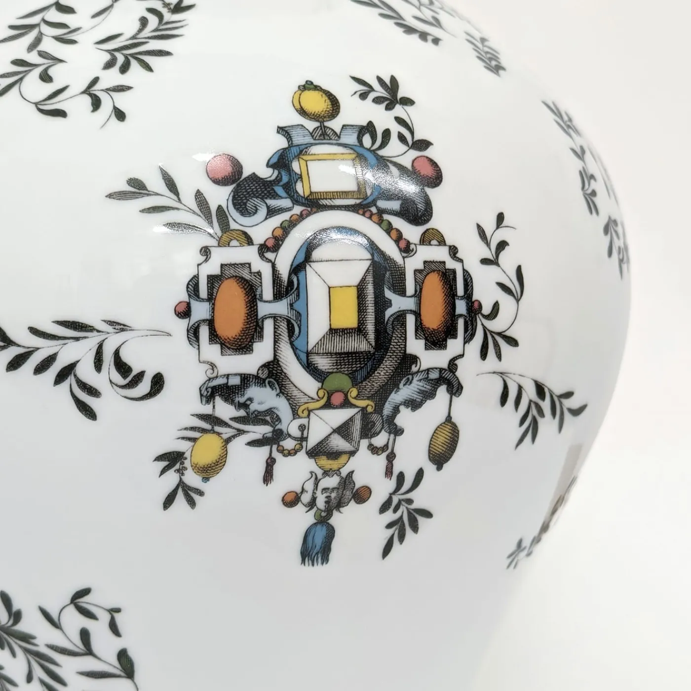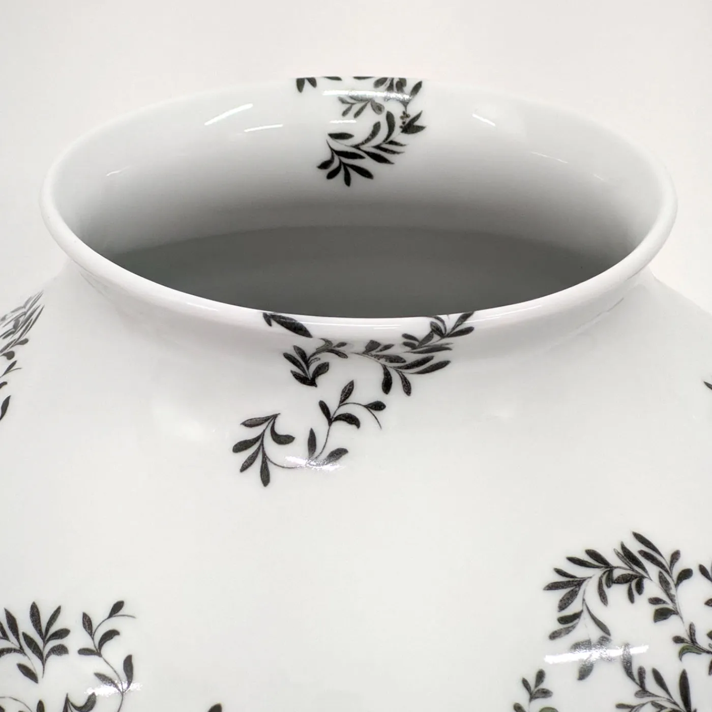 Questo affascinante vaso in porcellana, caratterizzato da un’armoniosa silhouette ad anfora, sarà idealmente esposto su una consolle in stile orientale per un look coeso di grande fascino evocativo. Gli elementi decorativi sono rappresentati in una disposizione giocosa che ne esalta il fascino contemporaneo.