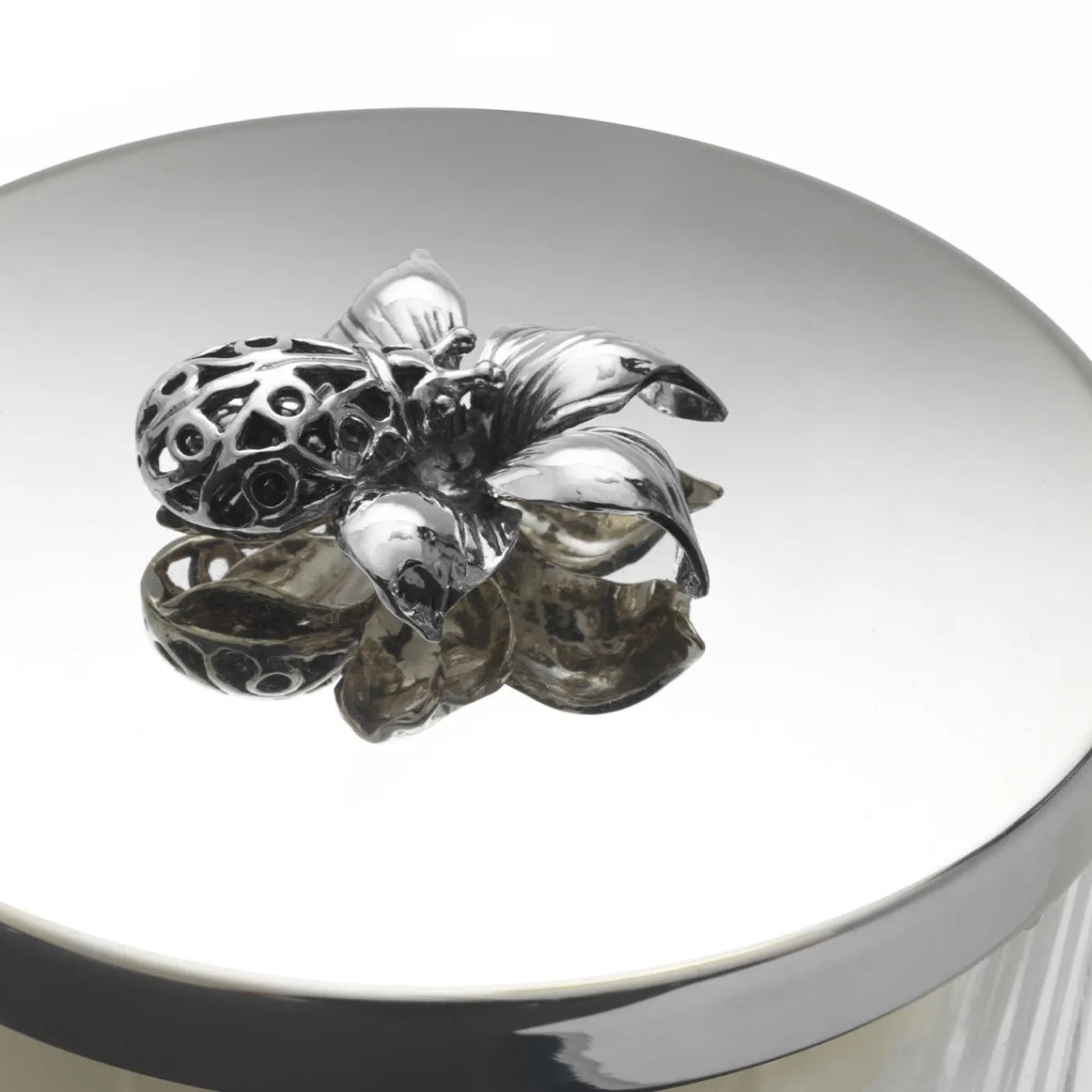 Splendido e raffinato elemento d’arredo per illuminare la casa, questo vaso portacandele sarà un regalo prezioso per una persona cara. Realizzato in vetro, vanta un coperchio argentato unico nel suo genere, ornato da un fiore e da una coccinella che funge da finalino scultoreo e che, una volta sollevato, rivela la candela bianca all’interno.