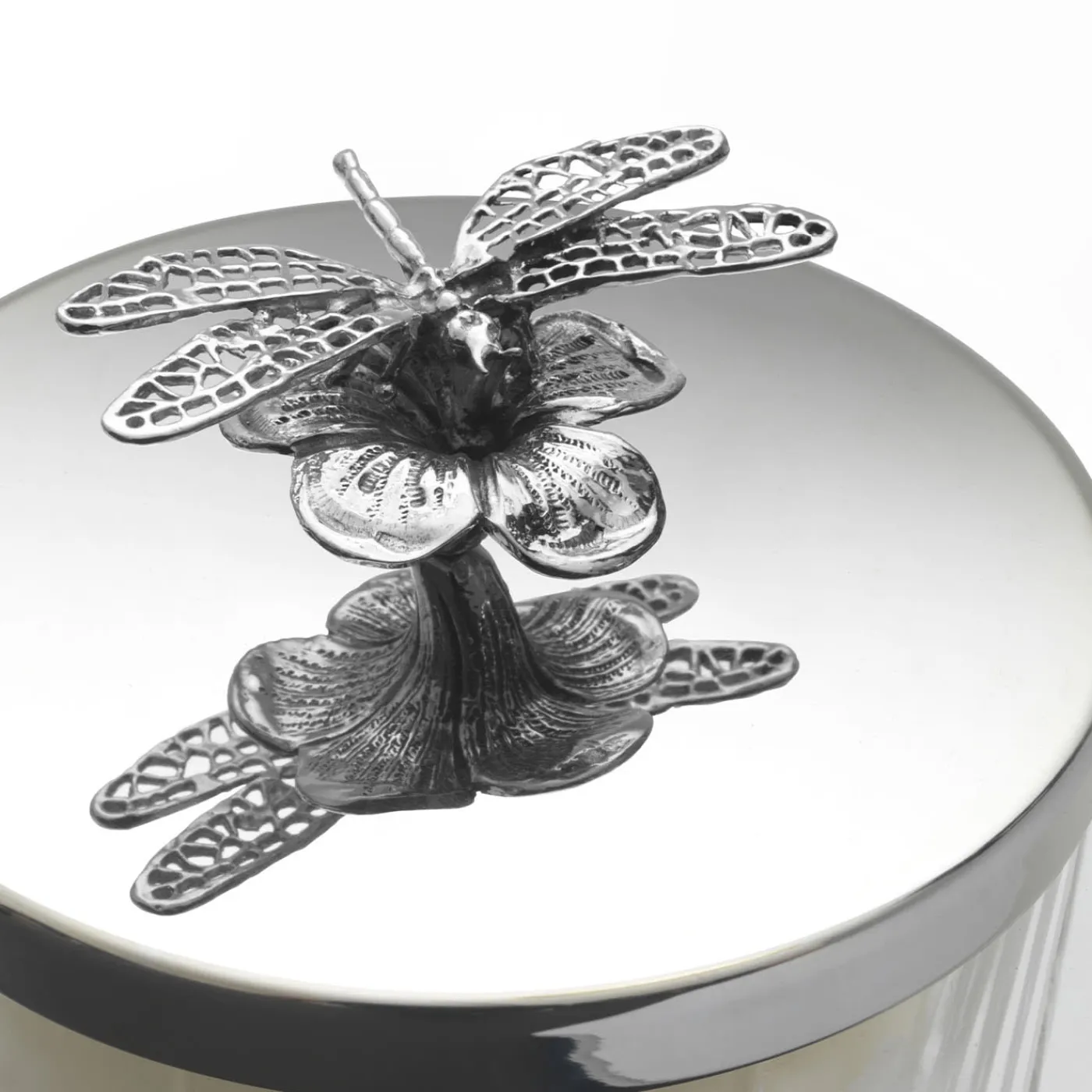 Elegante e sofisticato, questo vaso votivo per candele sarà un’aggiunta raffinata a decorazioni moderne o classiche. Realizzato squisitamente a mano in vetro e dotato di uno splendido coperchio argentato ornato da un fiore su cui poggia una libellula, questo pezzo include una candela che illuminerà qualsiasi arredamento.