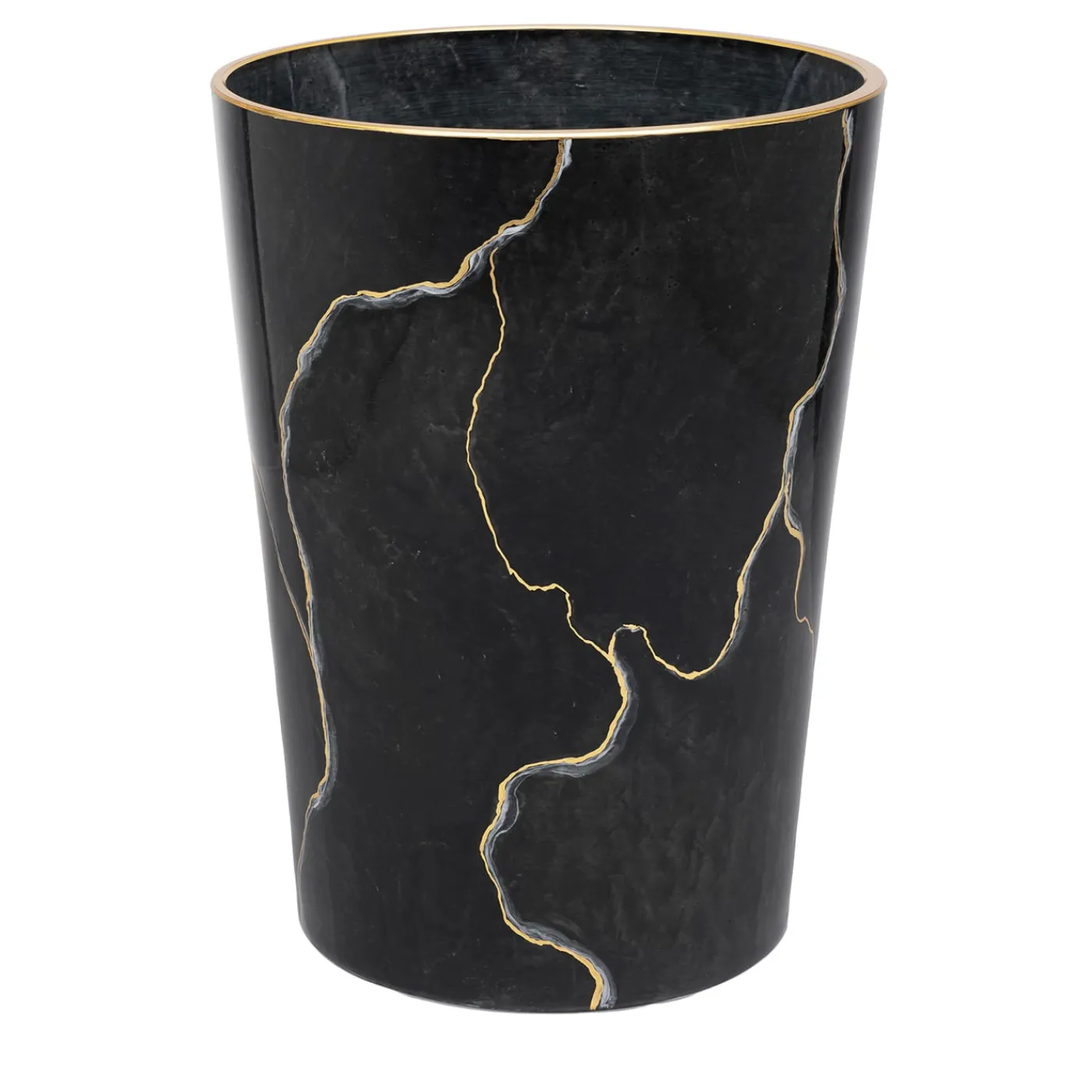 Una sorprendente fusione di praticità e arte, questo cestino per la polvere realizzato a mano funge anche da elegante vaso. In vetro soffiato a mano e meticolosamente dipinto per emulare la bellezza senza tempo del marmo Portoro, vanta delicati intarsi di foglia d’oro, ciascuno applicato con precisione per una finitura raffinata. Le opzioni di personalizzazione includono colori alternativi ispirati ad altri marmi pregiati, aggiungendo versatilità a questa sofisticata creazione.