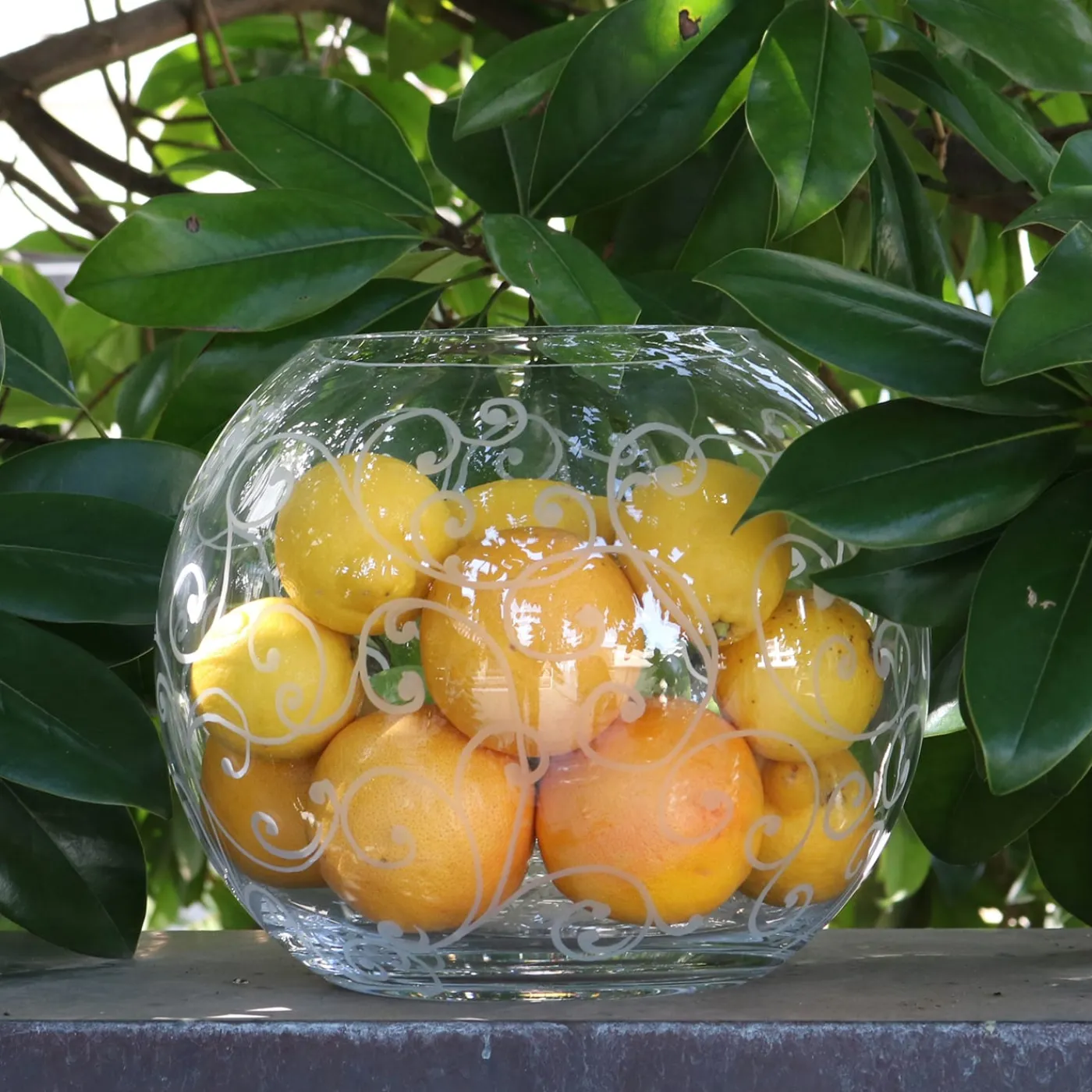 Con un design dinamico e accattivante, questo vaso sferico è un pezzo unico meticolosamente soffiato a bocca e decorato da maestri artigiani. Il motivo intricato e intrigante dei riccioli si ispira ai movimenti vorticosi dei nastri durante le esibizioni di ginnastica ritmica e ricopre il corpo sferico del vaso. Questo pezzo sarà un innegabile elemento di spicco in case moderne o tradizionali.