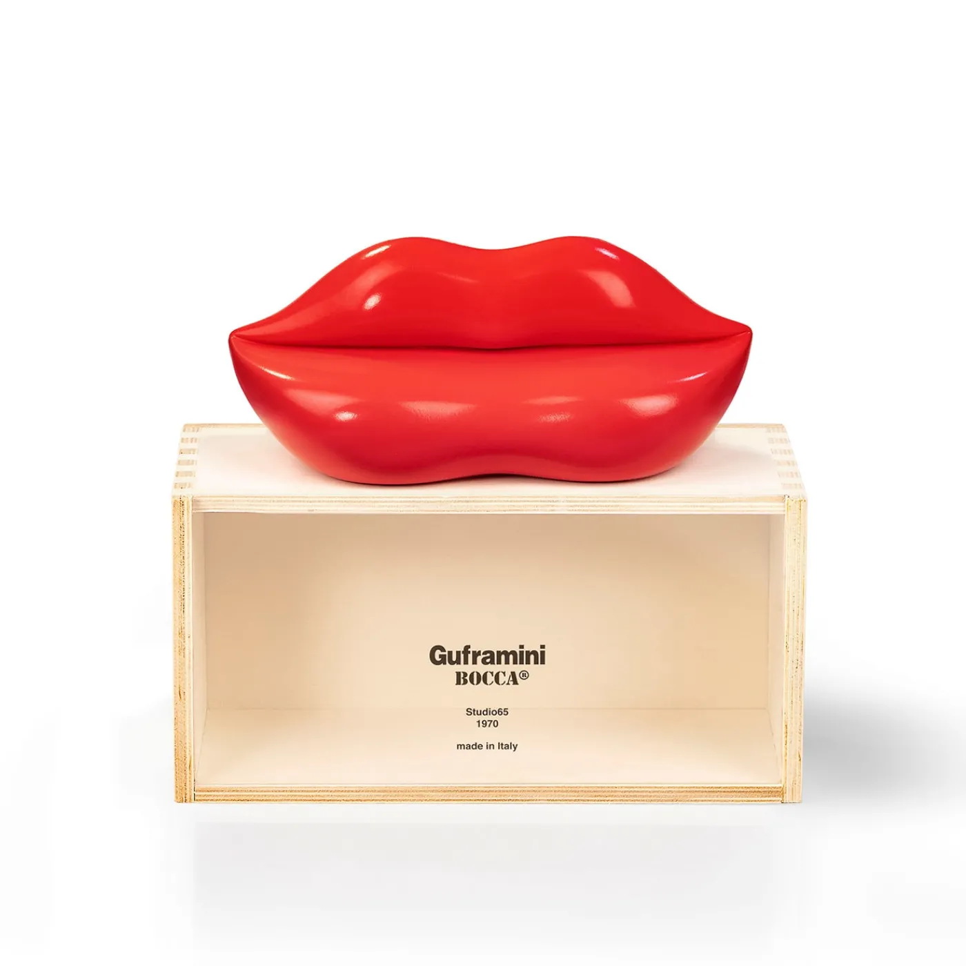 Le icone Gufram sono diventate più piccole e si sono trasformate in Guframini! Progettate in scala 1:8, le nuove miniature riproducono perfettamente le famose sculture originali. Ogni “mini” creazione è realizzata in poliuretano espanso che viene iniettato nello stampo precedentemente dipinto in modo da ottenere, attraverso un metodo all’avanguardia, un pezzo unico identico all’originale: stessa morbidezza, stessi colori e stessi dettagli. Ogni Guframinis viene poi rifinito a mano, ogni pezzo è unico nel suo genere.