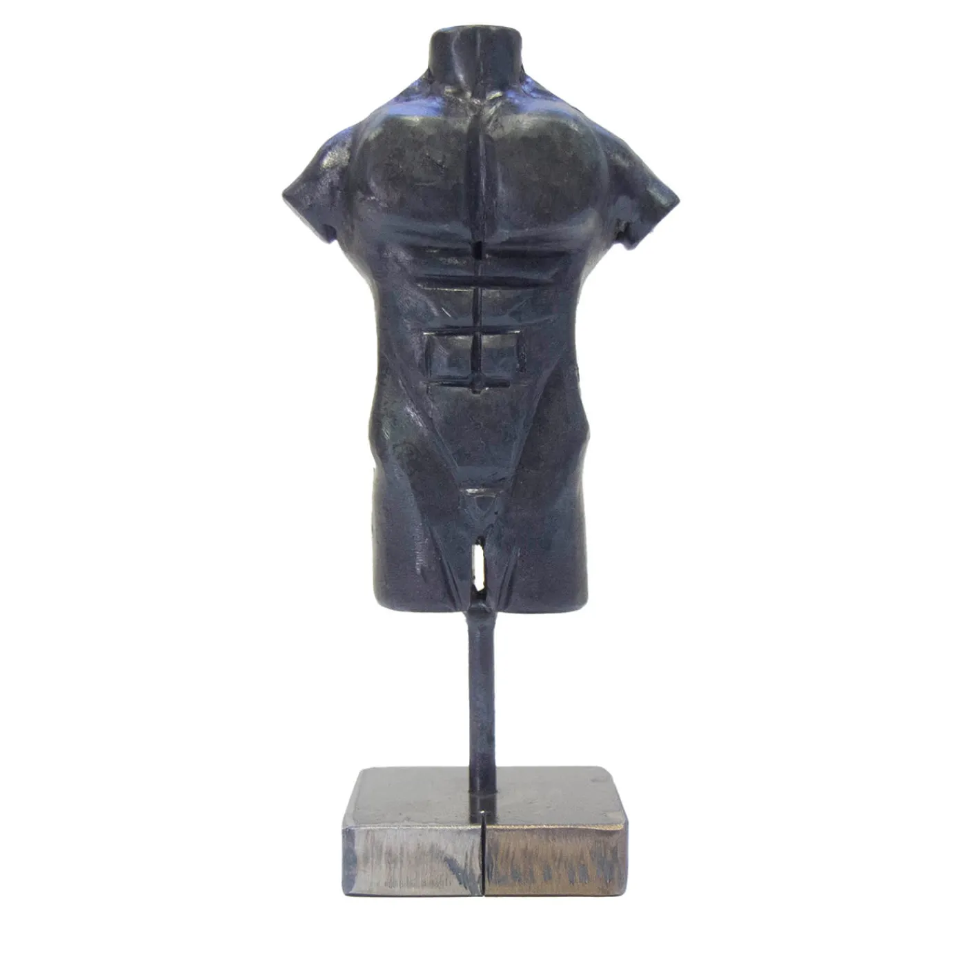 Questa singolare scultura antropomorfa è frutto di un instancabile processo di stampaggio e cesellatura da parte di Lorenzo Quadalti. Nonostante le sue dimensioni ridotte, ha richiesto uno sforzo manuale e una perizia straordinari per essere realizzata e levigata da un unico blocco di ferro, un processo di lavorazione alimentato dalla ricerca della perfezione che riecheggia l’ispirazione e l’etica greca antica della perfezione fisica e mentale.