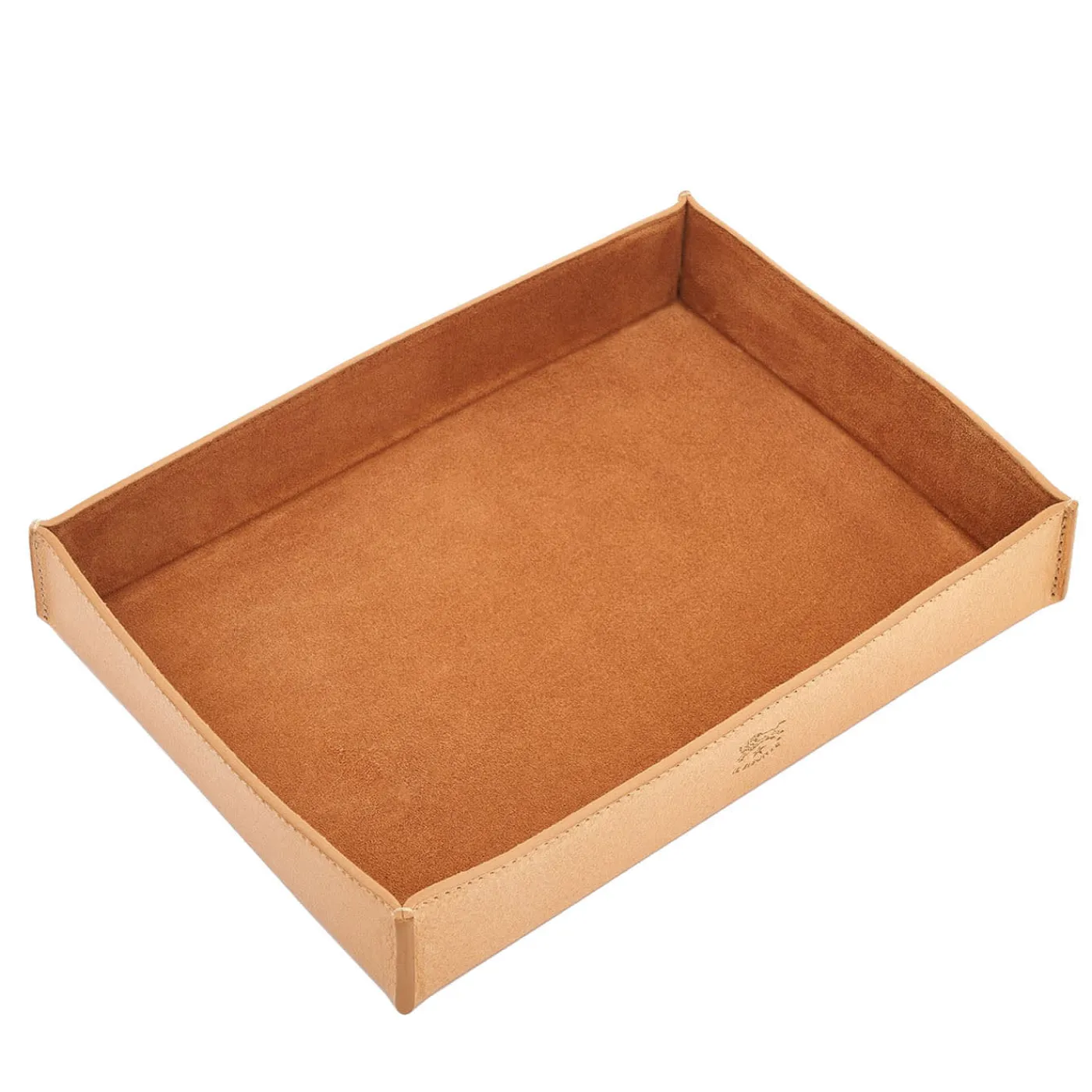 Accattivante nel suo design strutturato, questo vassoio medio in pelle naturale offre eleganza e praticità. Le sue dimensioni spaziose accolgono senza problemi gli oggetti più grandi, rendendolo ideale per organizzare gli elementi essenziali della scrivania o per tenere in ordine gli effetti personali. Gli angoli cuciti a mano e la fodera in pelle scamosciata ne evidenziano la raffinata lavorazione. Realizzata in Toscana con pelle di prima qualità conciata al vegetale, è il simbolo dello stile de Il Bisonte e dell’eccezionale abilità artigianale.