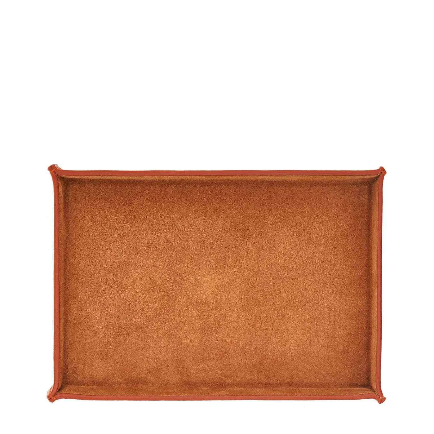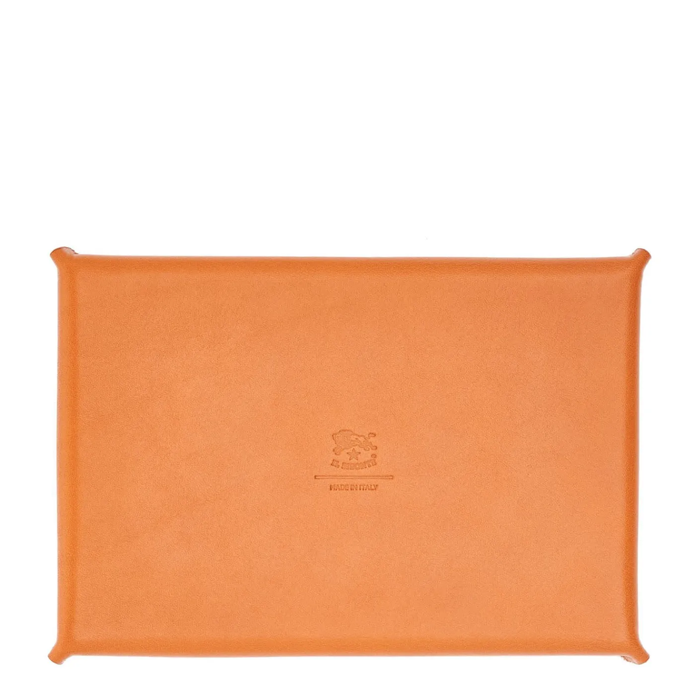 In ufficio, in camera da letto o all’ingresso, questo piccolo vassoio in pelle color caramello aggiunge un tocco di raffinatezza. Il suo design strutturato, realizzato in morbida pelle conciata al vegetale in una ricca tonalità caramello, è perfetto per organizzare i piccoli oggetti essenziali con stile. Gli angoli cuciti a mano e la fodera in pelle scamosciata ne esaltano la sensazione di lusso. Sapientemente realizzato in Toscana da maestri artigiani, questo vassoio incarna l’impegno de Il Bisonte per la qualità e la tradizione.