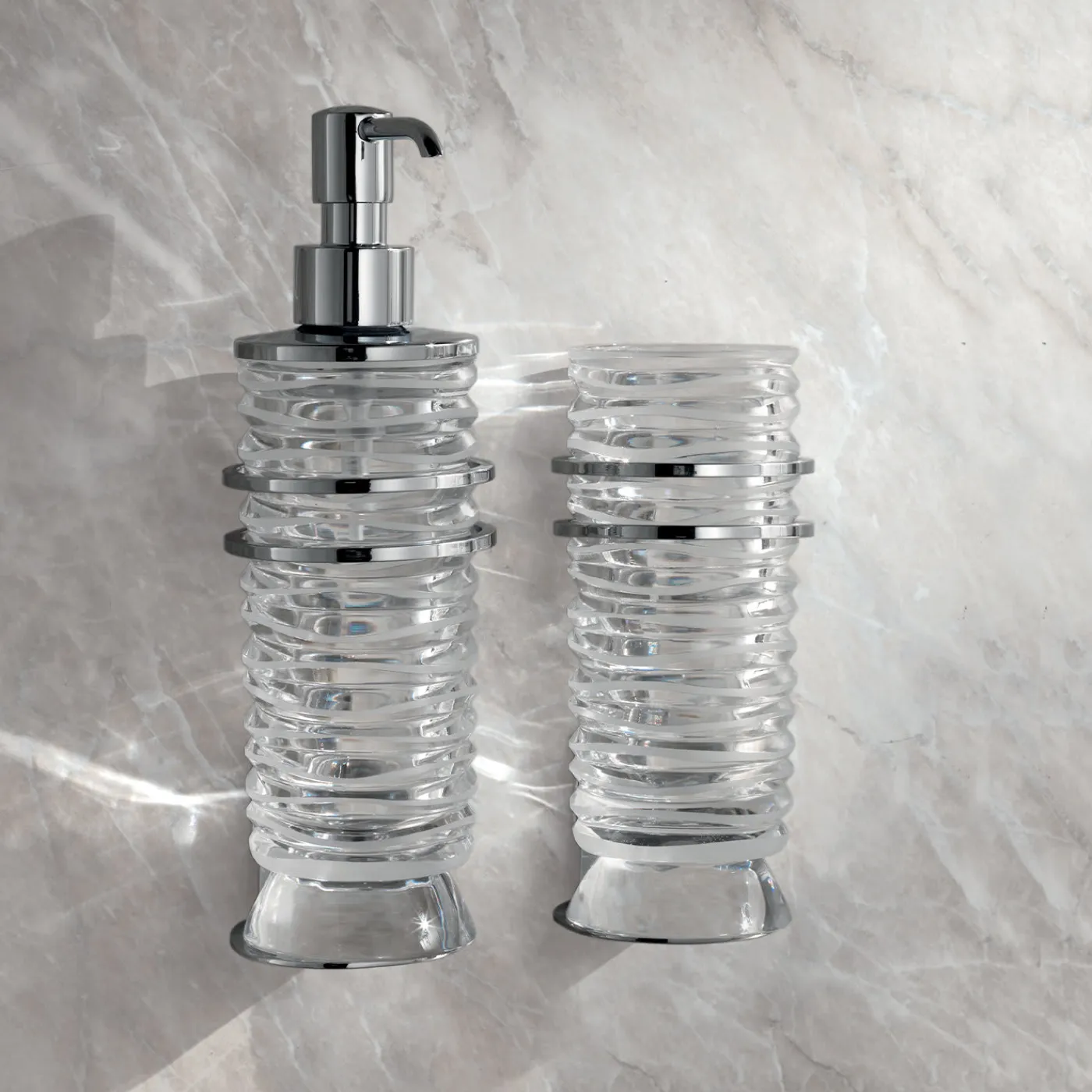 Questo delicato dispenser di sapone realizzato solo con cristallo italiano tagliato a mano al Pb24% è il tocco delicato perfetto per ogni casa. Il suo motivo, realizzato a regola d’arte, è costituito da onde tridimensionali che si alternano tra opacità e trasparenza. La ricerca del design e il materiale di alta qualità che compongono questo dispenser di sapone daranno anche un puro senso di pulizia.