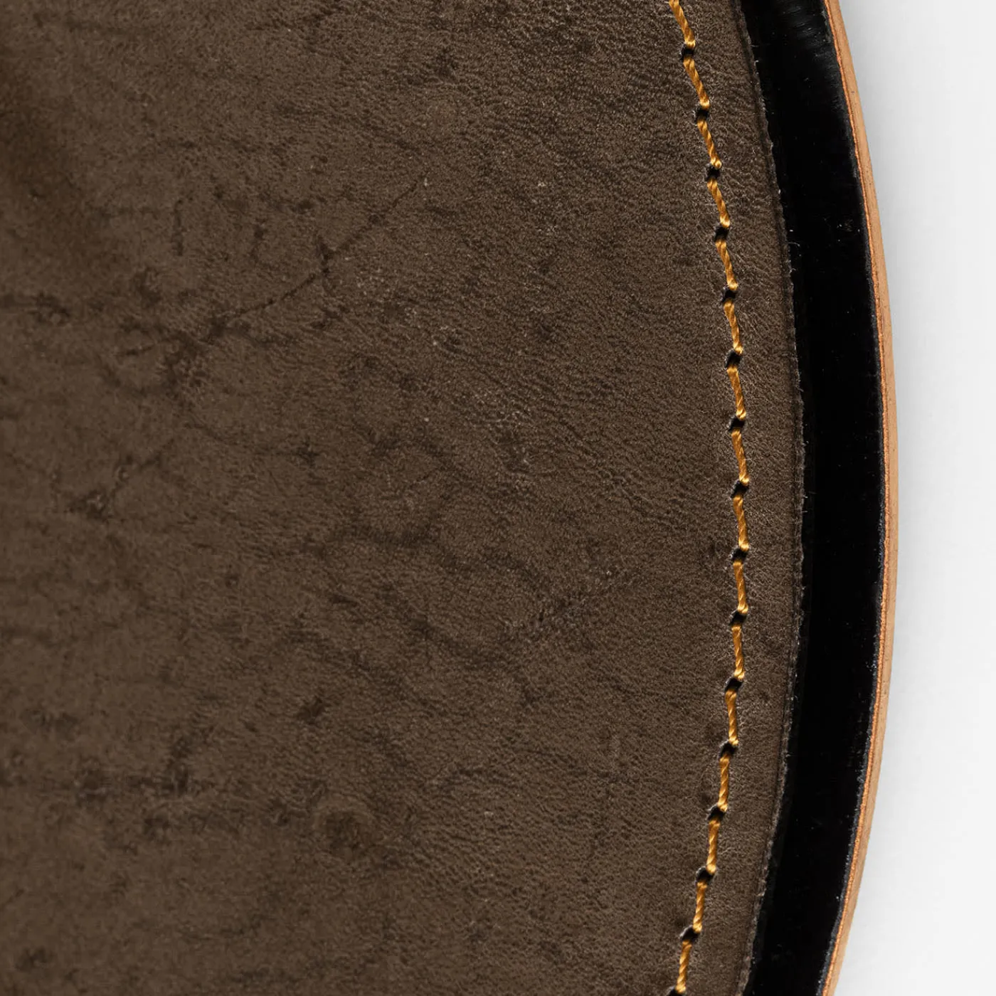 Collezione di piatti decorativi realizzati con la tecnica dello smalto a fuoco su rame. I colori e i motivi derivano da una visita al Guggenheim Museum di New York, mentre la tecnica è un omaggio al design italiano degli anni Cinquanta, Sessanta e Settanta. Il retro è smaltato e rivestito in pelle marrone scuro cucita a mano.