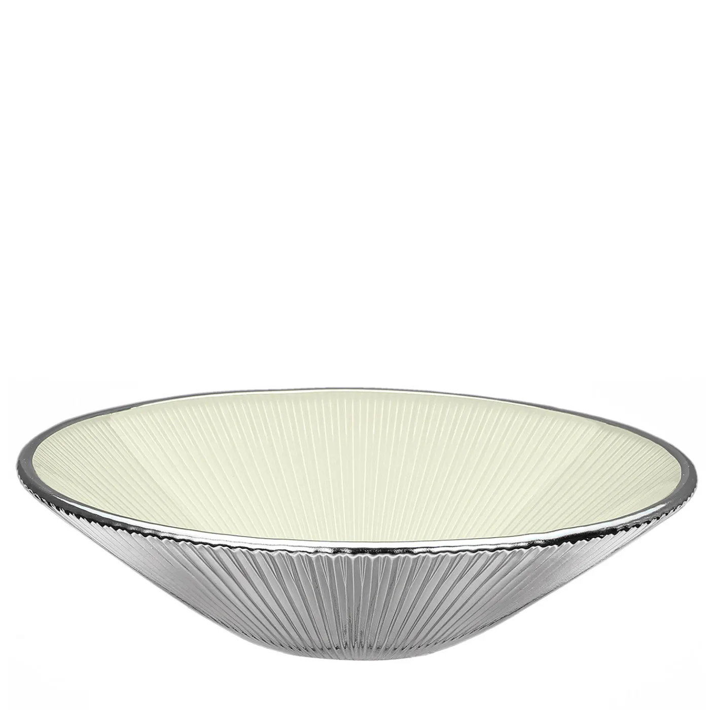 La ciotola in vetro Lirica è un pezzo squisito che presenta un interno bianco crema impreziosito da una sofisticata placcatura in argento, che aggiunge un tocco di eleganza ad ambienti sia informali che formali. L’accuratezza dei dettagli e il design elegante rendono questa ciotola un’aggiunta versatile a qualsiasi tavolo, perfetta per servire una serie di delizie culinarie. La sua estetica senza tempo garantisce che rimarrà un oggetto prezioso nella vostra collezione per gli anni a venire.