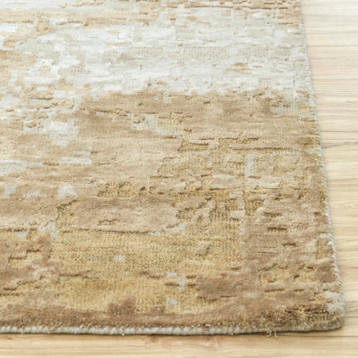 Questo magnifico tappeto di design annodato a mano è un trionfo di design minimalista e di eccezionale maestria. Realizzato in una lussuosa miscela di 60% seta, 30% lana e 10% cotone, irradia una sobria eleganza con la sua palette di colori avorio scuro e nichel. Il motivo astratto, caratterizzato da un sottile gioco di luci e ombre, crea profondità e consistenza. È disponibile in vari colori, forme e dimensioni.
