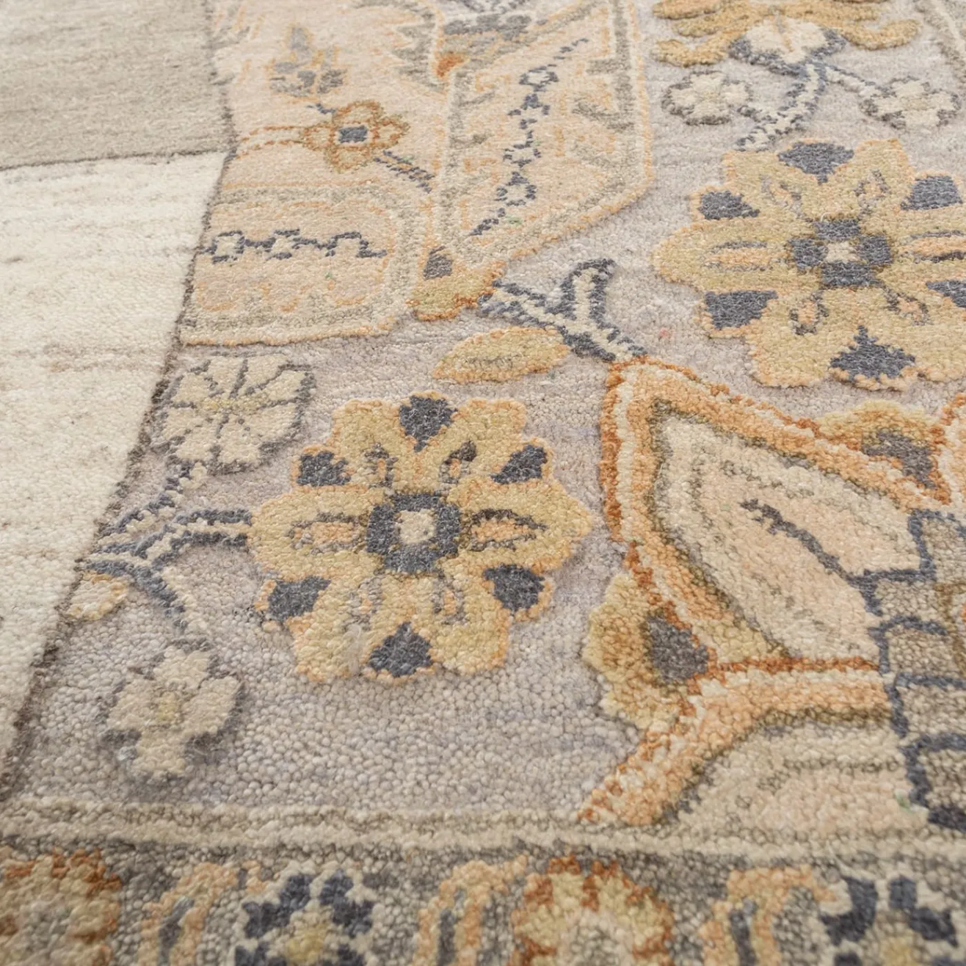 Sperimentate la fusione di eleganza tradizionale e stile contemporaneo con il tappeto Perspective annodato a mano. Questo pezzo presenta un design architettonico giocoso, con blocchi astratti che introducono un’estetica moderna su uno sfondo antico. Realizzato con una lussuosa miscela di lana e seta di prima qualità, il tappeto offre una consistenza e un comfort eccezionali sotto i piedi. L’armoniosa combinazione di oro tenue e ghiaccio vanigliato crea una palette di colori sofisticata, che lo rende un’aggiunta adattabile a vari stili di interni. Perfetto per chi desidera raccontare una storia di eleganza all’interno del proprio spazio abitativo, questo tappeto di transizione si integra perfettamente con l’arredamento classico e moderno. Meticolosamente annodato a mano nell’India rurale, incarna l’impegno per la qualità e la maestria, rendendolo un elemento centrale ideale per qualsiasi stanza.