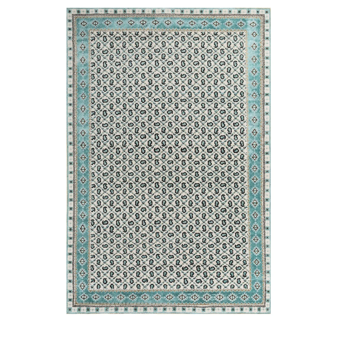 Scoprite la squisita maestria del tappeto Marcellino annodato a mano, dove il fascino vintage incontra l’eleganza contemporanea. Ispirato agli audaci disegni della decoratrice francese Madeleine Castaing, questo lussuoso tappeto mostra il suo stile caratteristico attraverso intricati motivi paisley stilizzati inseriti in un traliccio decorativo. Un classico bordo geometrico ornamentale incornicia elegantemente il disegno, esaltandone il fascino visivo. Realizzato in una sontuosa miscela di lana e seta di bambù, questo tappeto presenta un aspetto vintage e invecchiato nei toni del bianco e del blu piscina. I motivi audaci e i colori ricchi evocano un senso di raffinatezza, rendendolo un pezzo forte adatto a diversi stili di interni. Meticolosamente annodato a mano nell’India rurale, è una testimonianza della moderna maestria artigianale, che si affianca alla visione artistica di uno dei più grandi pionieri del design francese.
