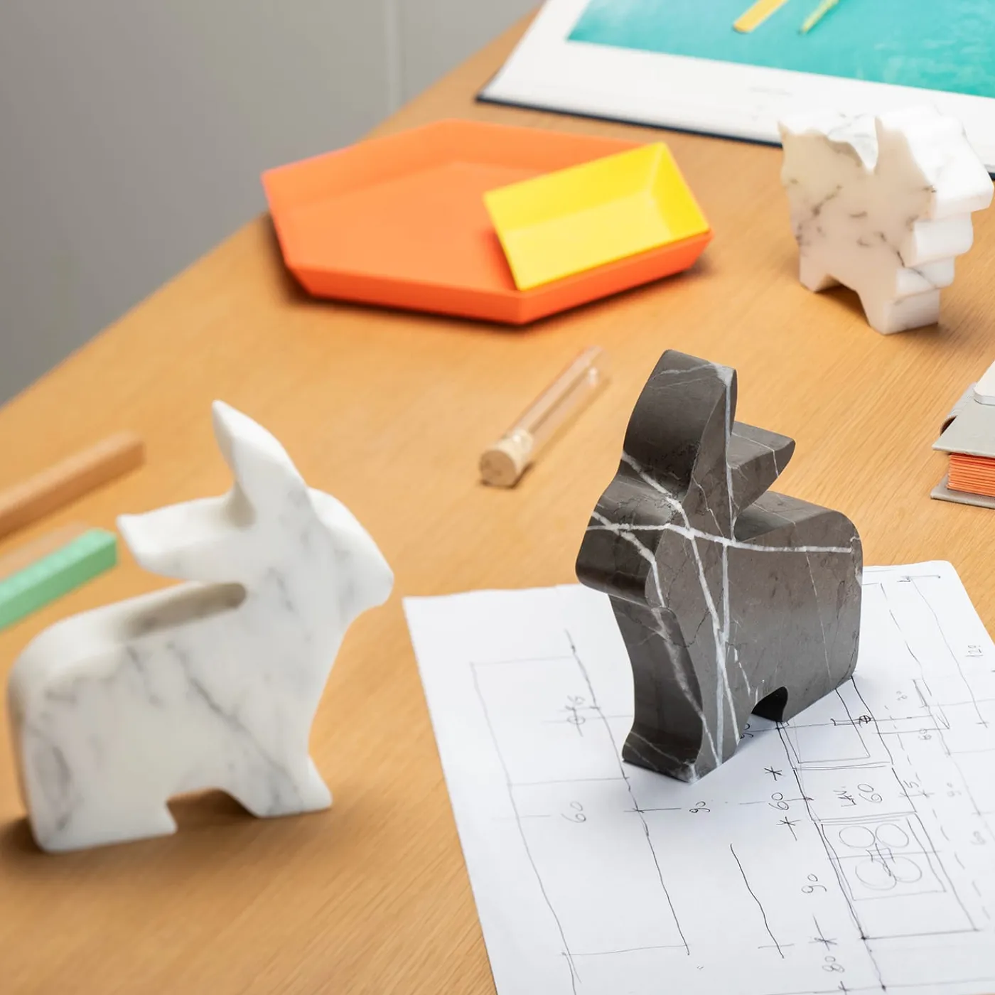 Definita da venature bianche straordinariamente naturali di audace valore geometrico, questa statuetta in marmo Graphite è un design unico della serie Factory di Alessandra Grasso. Realizzata e rifinita a mano, presenta una silhouette a forma di coniglietto che fungerà da fermacarte o da fermalibri in modo straordinariamente decorativo. Disponibile in una variante più grande e bianca su richiesta.