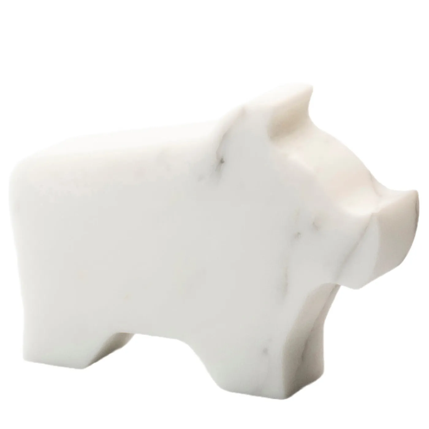 Questa raffinata statuetta in marmo bianco di Carrara a forma di maiale stilizzato è uno dei progetti più singolari tra i pezzi a forma di animale disegnati da Alessandra Grasso. Ironia ed eleganza convivono in questo design, perfetto come piccolo fermacarte o come pezzo decorativo per interni contemporanei. Disponibile in due versioni più grandi e in una variante di marmo grigio Grafite, appartiene all’originale Factory Collection.