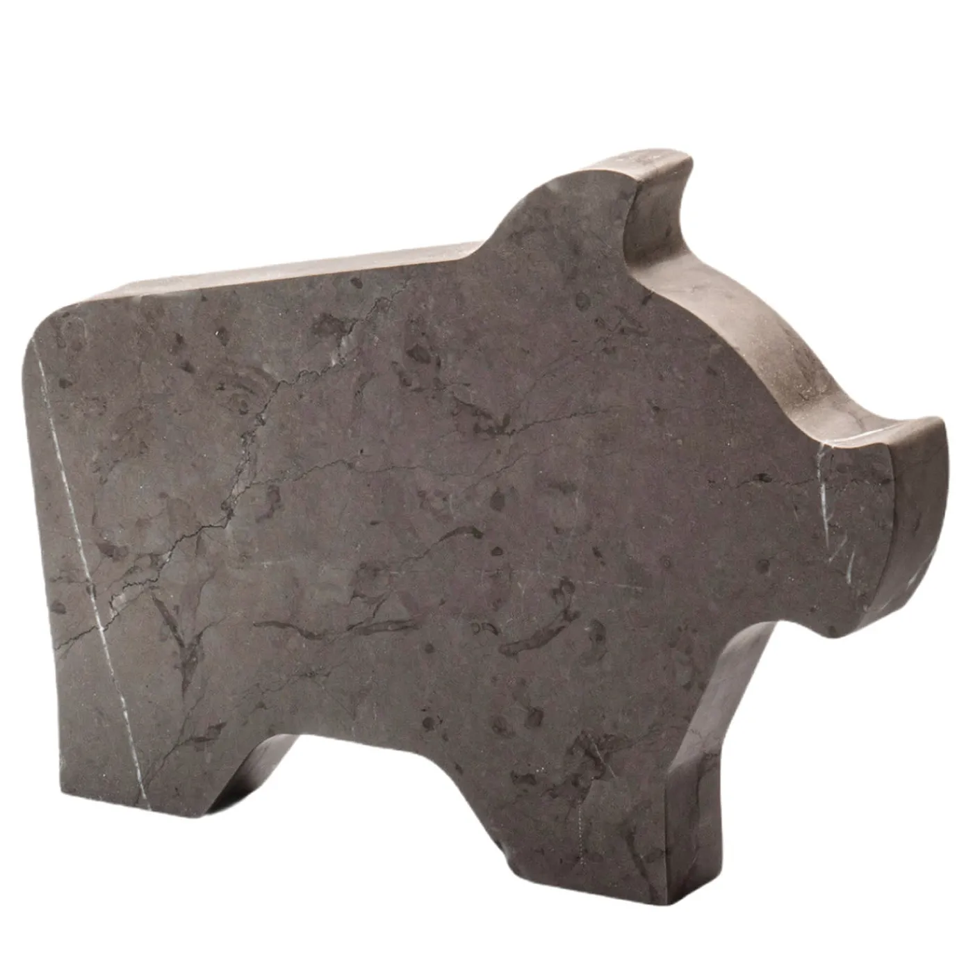 Parte della serie di allegre statuette Factory di Alessandra Grasso, questo splendido design decorerà in modo straordinario una credenza, una console o uno scrittoio con un fascino senza precedenti. Realizzato interamente a mano in marmo grafite e rifinito a mano, presenta una grande silhouette a forma di maiale che si abbina squisitamente alle altre forme di questa serie.