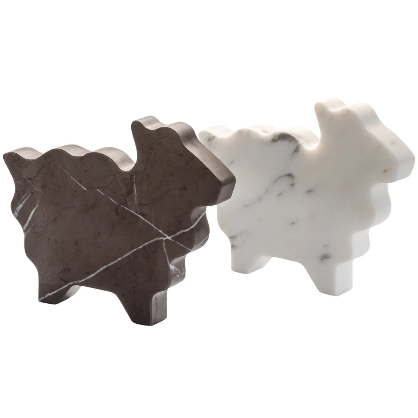 Giocosità ed eleganza sono superbamente sintetizzate in questa statuetta unica della serie Factory, che conta disegni originali a forma di animali della fattoria e realizzati a mano in marmi pregiati. Realizzato in marmo grigio Grafite e segnato da delicate venature, il pezzo è una soluzione artistica per ravvivare una superficie contemporanea spenta, sia come pratico fermacarte che come semplice elemento decorativo. Questa pecora è disponibile anche nella variante bianco Carrara e in due varianti più grandi.
